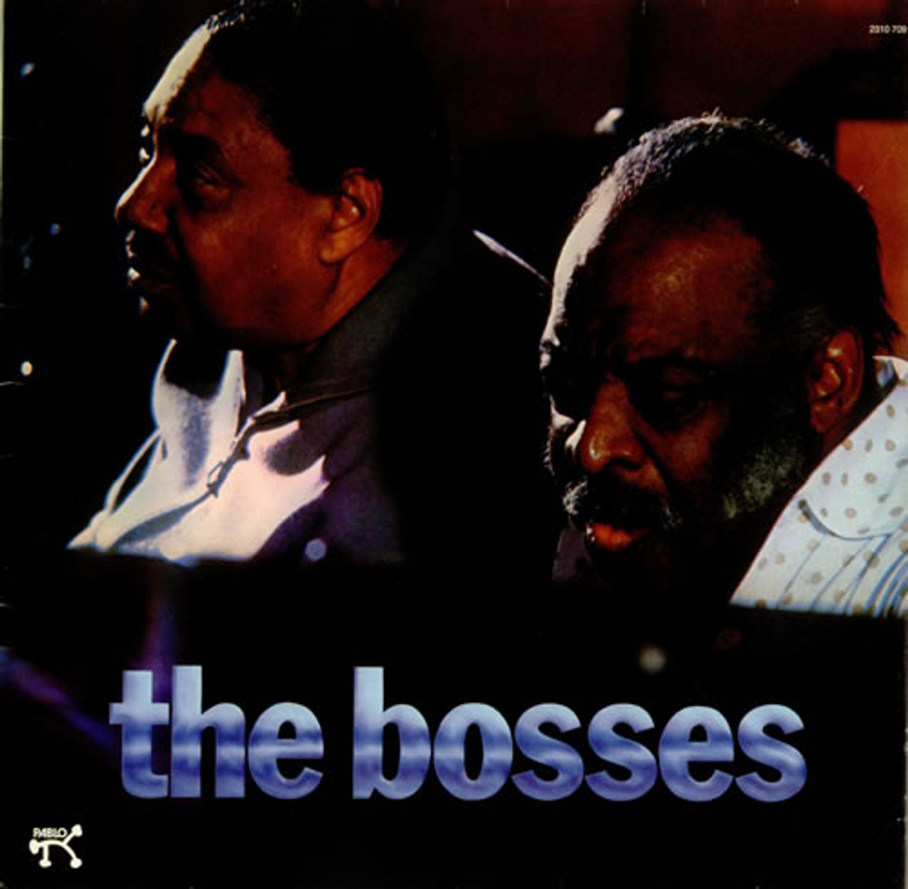 COUNT BASIE & JOE TURNER The Bosses (1974 UK 10-track stereo LP, starring Eddie Davis, Zoot Sims, Harry Edison, J.J. Johnson, Ray Brown, Irving Ashby and Louis Bellson. Both the laminated picture sleeve and vinyl are in excellent condition)