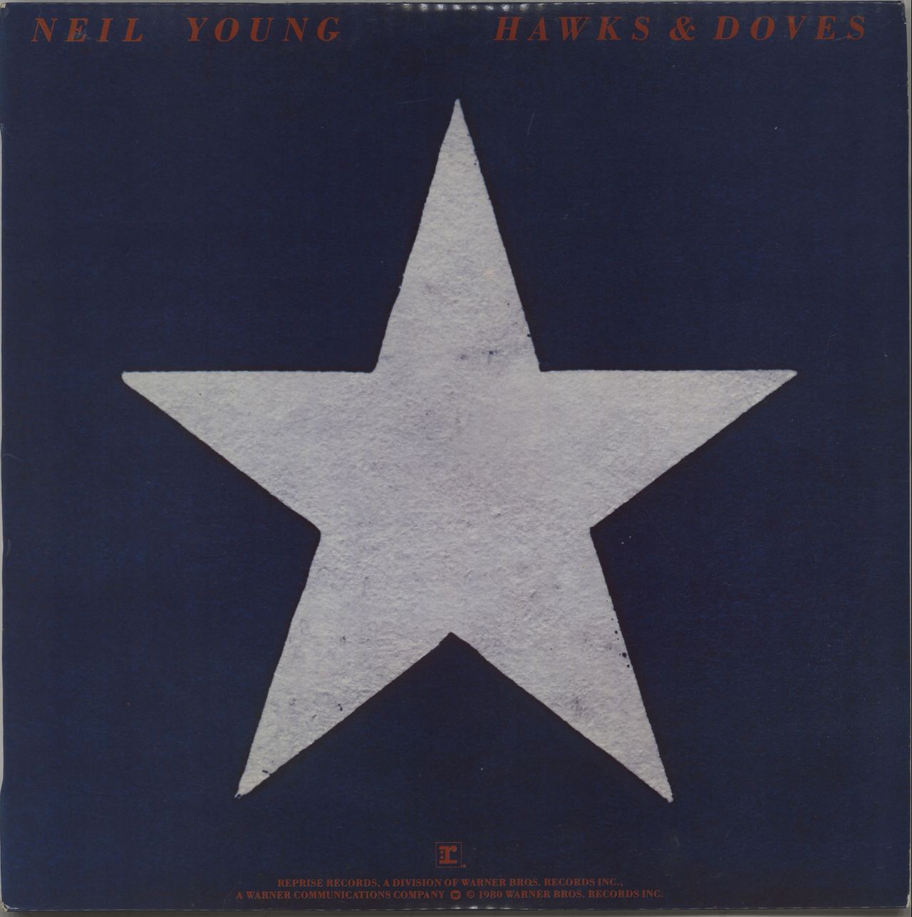 NEIL YOUNG Hawks & Doves (1980 Spanish 9-track vinyl LP, glossy picture sleeve with pinched spine. A game of two halves with Neil's tenth studio album, one side is a collection of material recorded between 1974-1977 and the other were newly written/recorded. The sleeve shows light shelfwear and the vinyl appears barely played S90307)