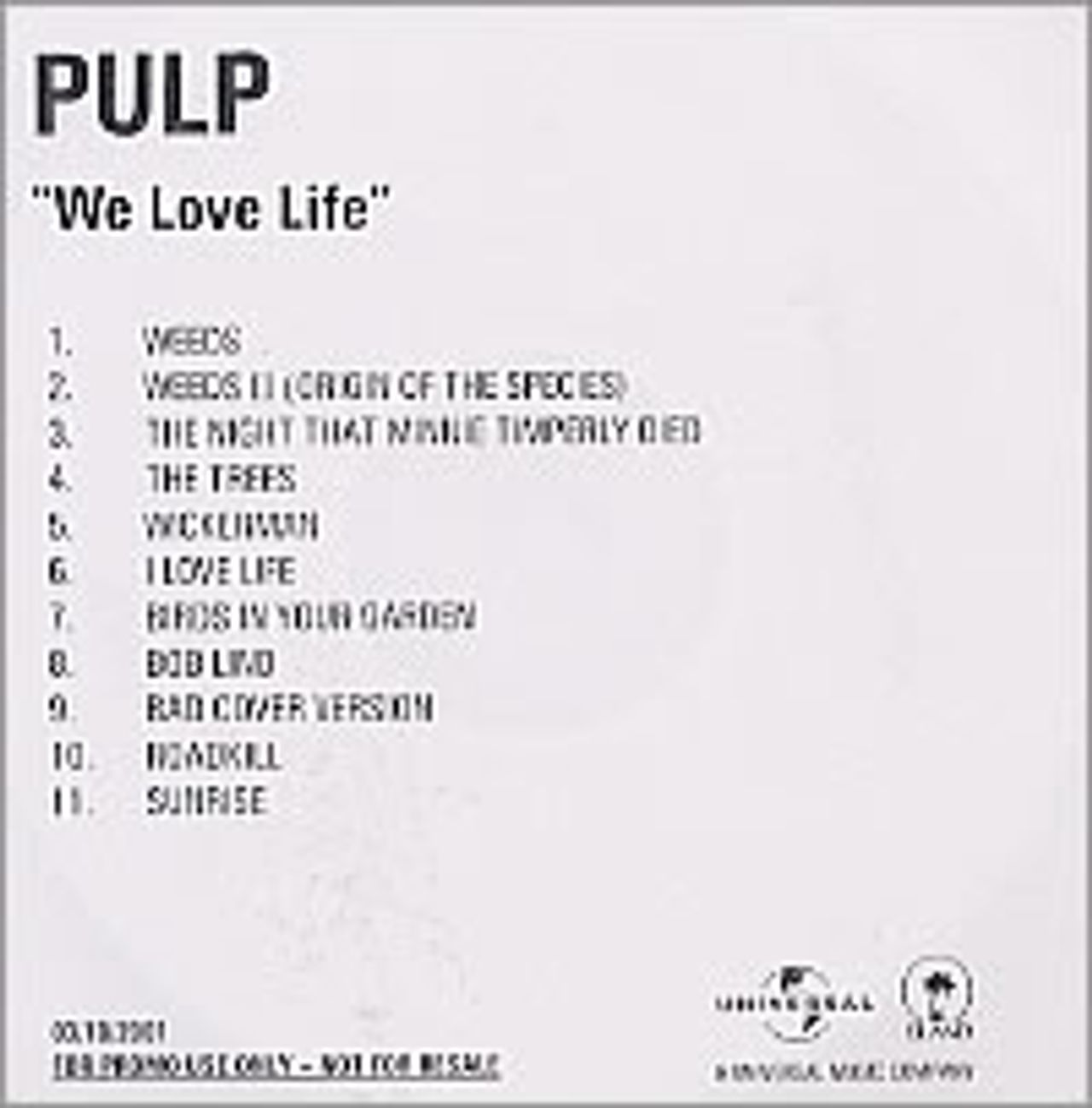 PULP We Love Life (2001 UK Universal/Island 11-track promo CD-R