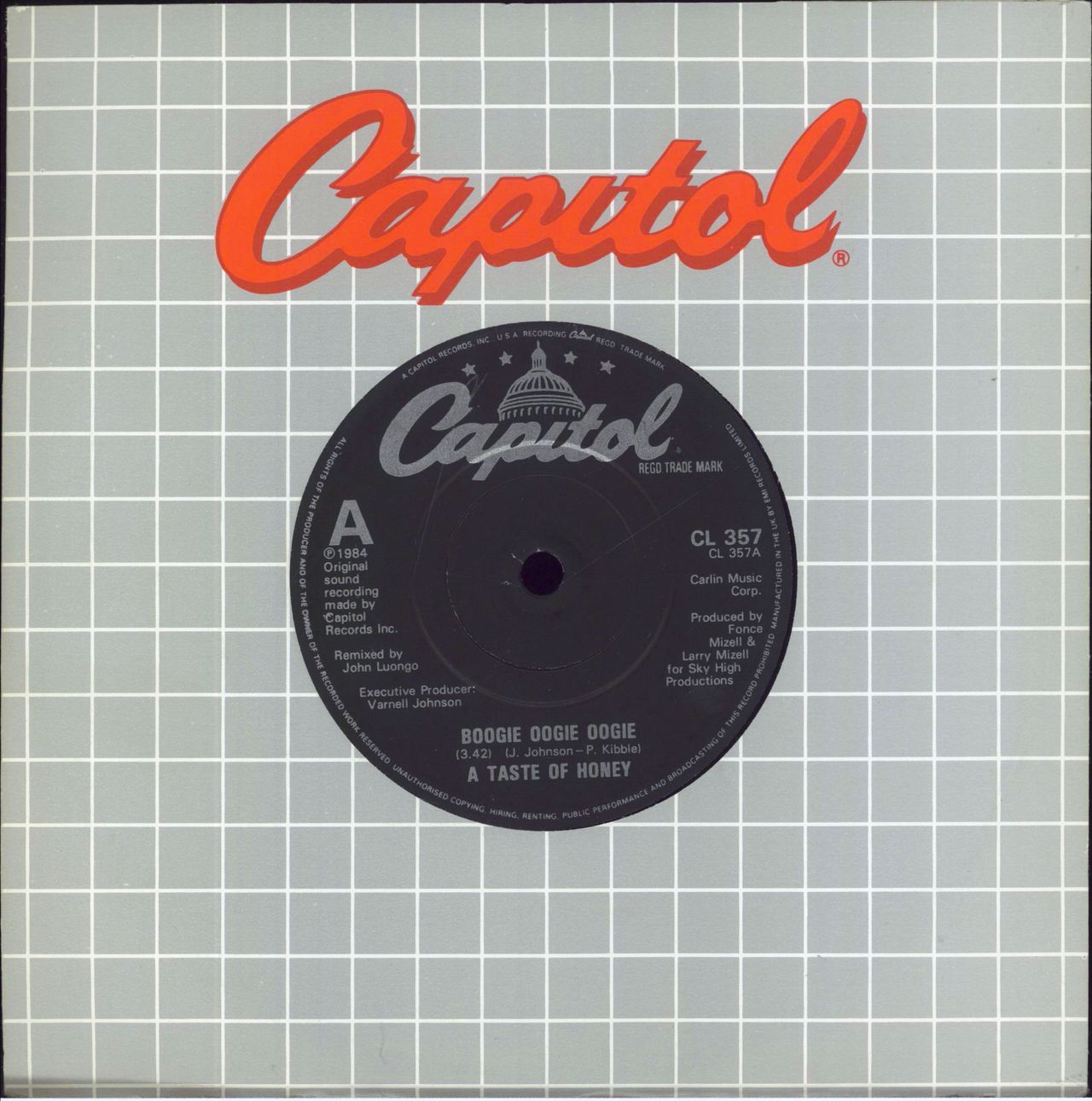 A TASTE OF HONEY Boogie Oogie Oogie (1984 UK issue of the 1978 7" vinyl single, featuring the John Luongo Remix plus the Original 1978 Version, Capitol company die-cut sleeve CL357)