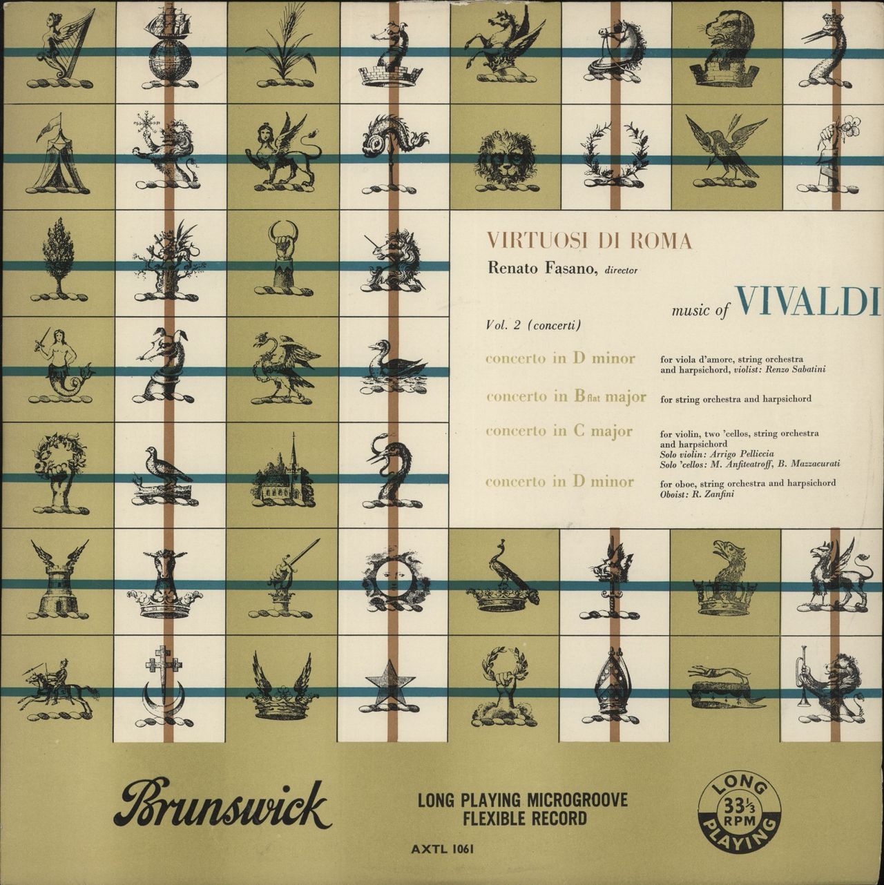 VIRTUOSI DI ROMA Music of Vivaldi Volume 2 (concerti) (1954 UK 4-track mono vinyl LP on the gold & purple Brunswick label, matt flipback picture sleeve. The sleeve has a 2" seam split to the top, otherwise shows minimal sign of wear and the vinyl is Excellent & appears barely played AXTL1061)
