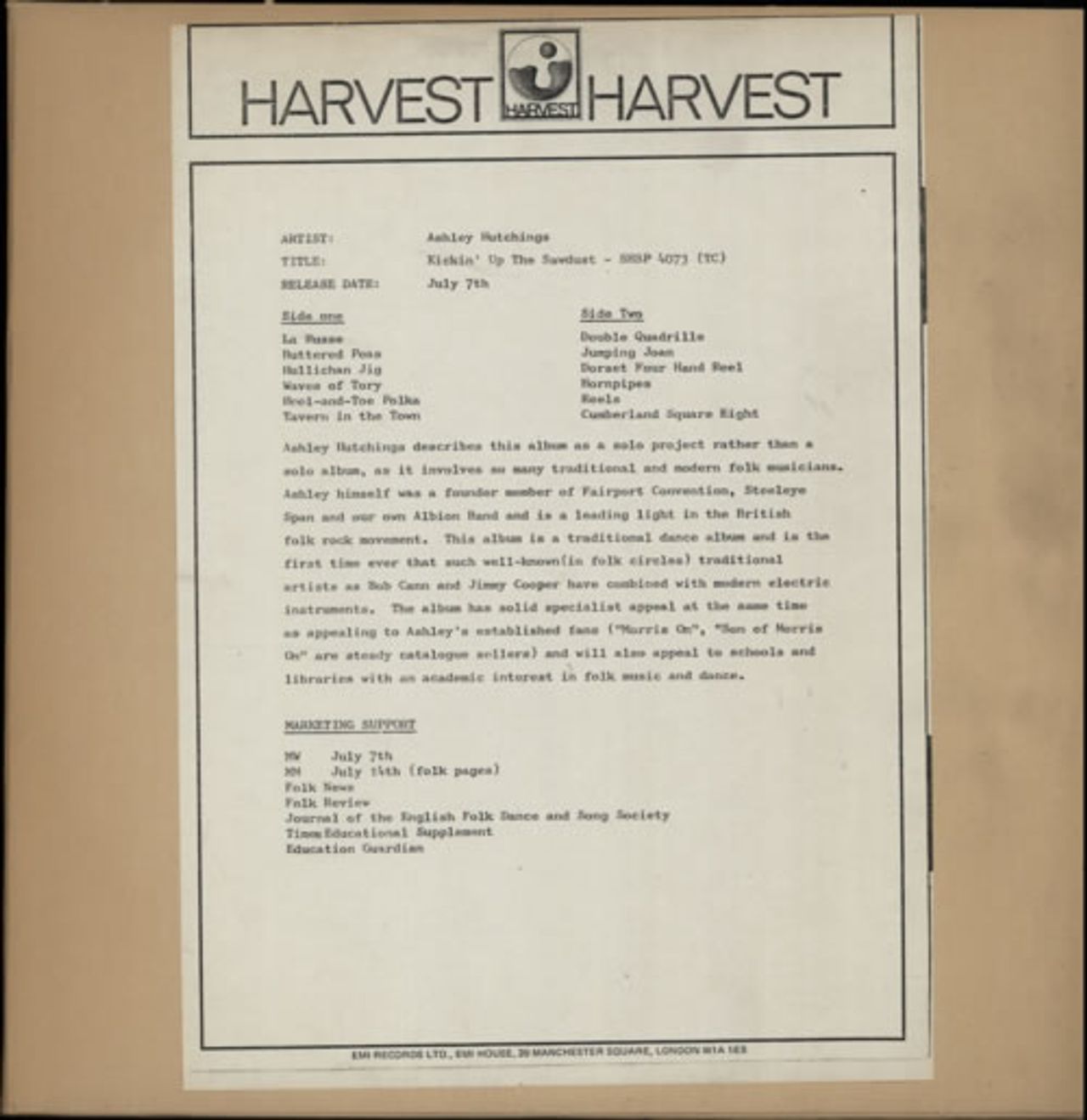 Harvest, in plain recycled sleeve with a copy of the UK press release on