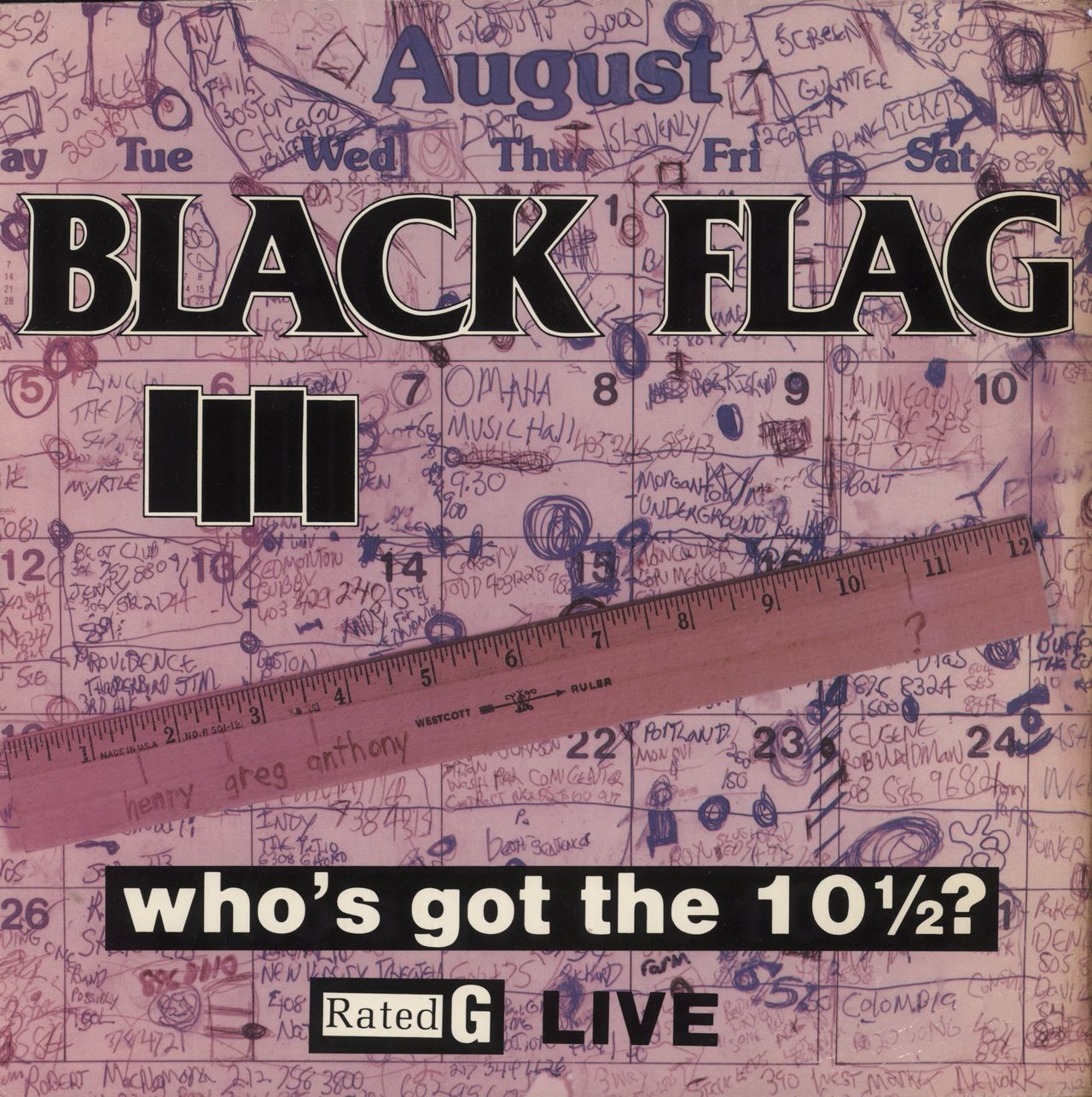 BLACK FLAG Who's Got The 10 1/2? (Scarce 1986 US issue 10-track vinyl LP recorded live at Starry Night in Portland, August 23rd '85, featuring classics by the legendary hardcore-punkers fronted by Henry Rollins, including Loose Nut, Slip It In/Gimmie, Gimmie, Gimmie and In My Head. Glossy picture sleeve with merch insert. The sleeve shows some notable wear & discolouration to the opening edge and has a little corner creasing. The vinyl is Excellent with only light signs of play SST060)