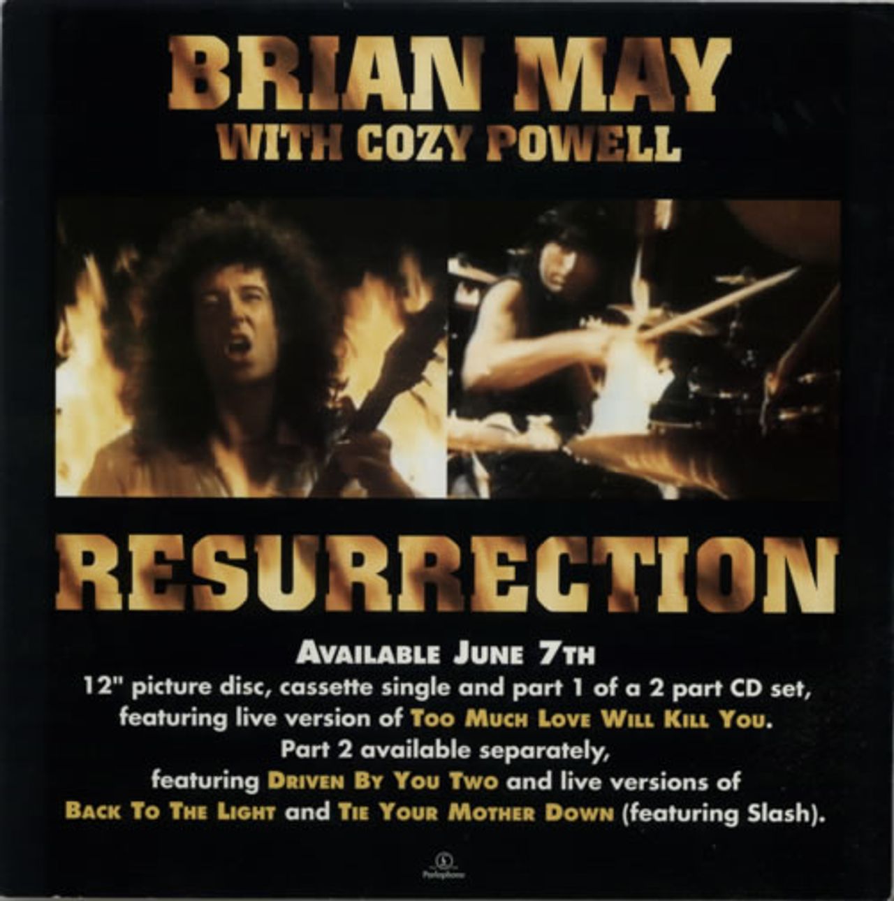 BRIAN MAY Resurrection (Original 1992 Parlophone UK promotional only display flat. Measuring 12" x 12", this was destined to be used instore to create shop displays, it has avoided such use and remains free of the staple marks which were typical an any rips or tears. Perfect for framing)