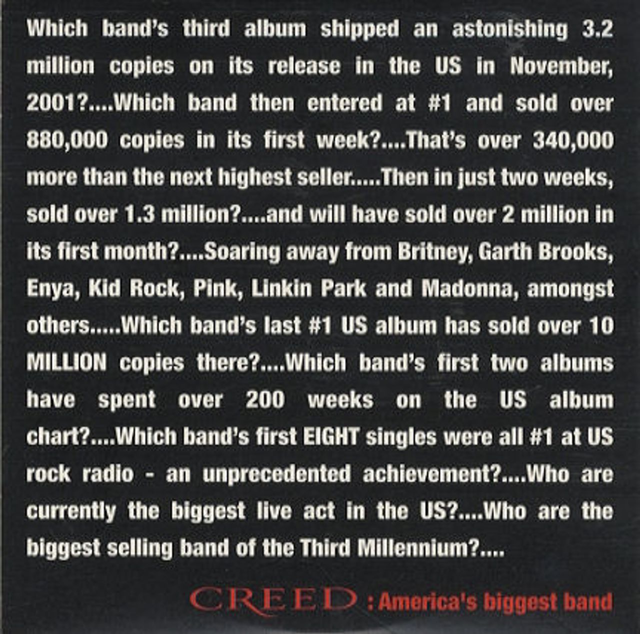 CREED My Sacrifice (2001 US 2-track promotional CD featuring both