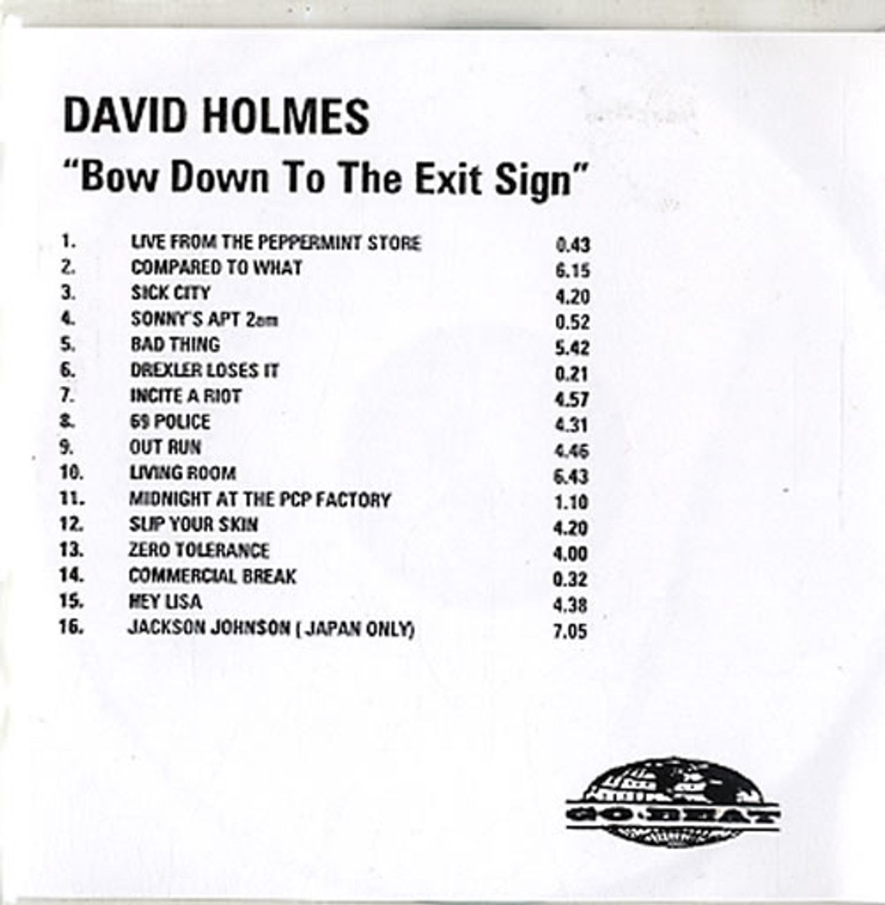 DAVID HOLMES Bow Down To The Exit Sign (2000 UK Go Beat