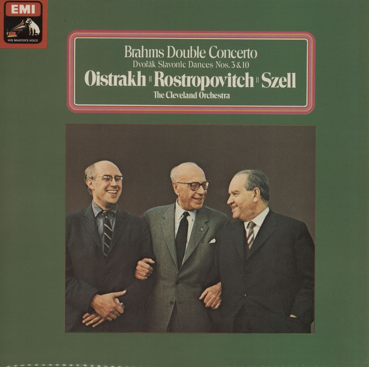 DAVID OÏSTRAKH & MSTISLAV ROSTROPOVITCH with THE CLEVELAND ORCHESTRA conducted by GEORGE SZELL Brahms: Double Concerto / Dvorák: Slavonic Dances Nos. 3 & 10 (1977 UK stereo LP issue of the 1970 performances on the black & white stamp label, fully laminated picture sleeve. The sleeve shows minimal shelfwear & the vinyl is flawless ASD3312)