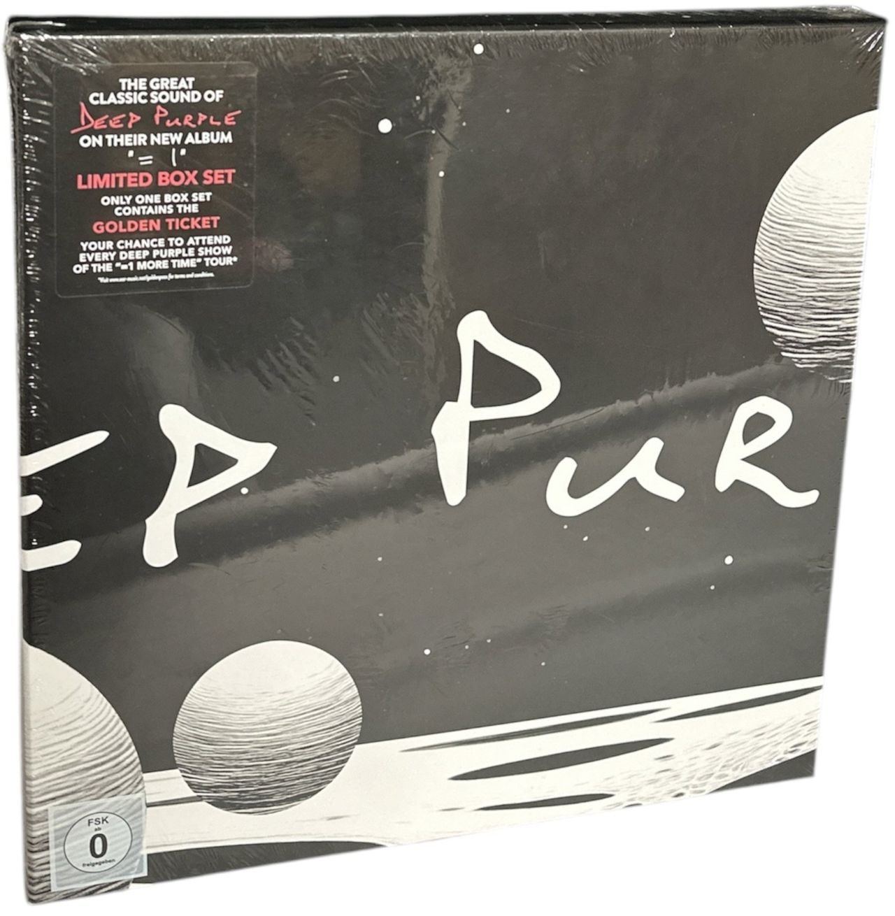 DEEP PURPLE =1 (2024 UK limited edition box set containing the 13-track album pressed on two 180g Black Vinyl LPs, a CD, DVD and three exclusive 10" vinyl discs featuring live recordings from the 2022 tour. Also includes a 24-page colour booklet, exclusive art print, T-shirt, two guitar picks, and lanyard, all housed in a superb lift-off lid picture box with matt finish. Hidden within one copy is a golden ticket granting entry to every show on the “=1 More Time” tour, which still tothis day has not been found yet, marking potential in this Sealed boxset. This copy remains factory sealed from new, unopened and unplayed, in the original mailer box 0219138EMU)