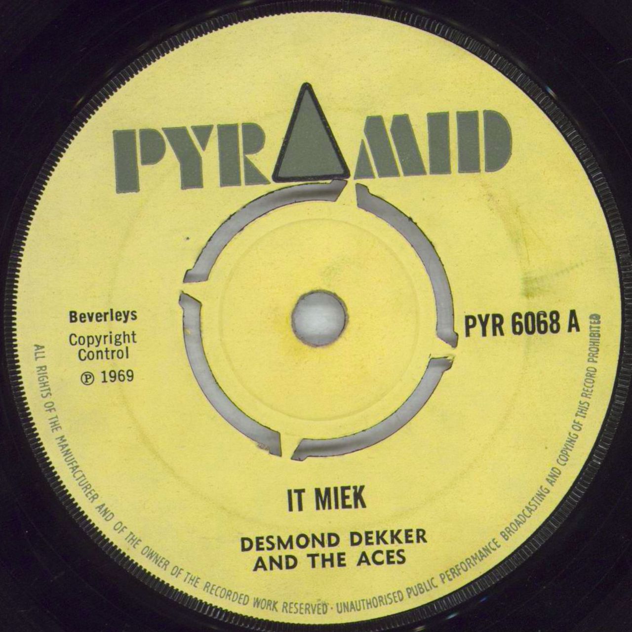DESMOND DEKKER It Miek (1969 UK 7" vinyl single with intact four prong centre, featuring another skinhead scorcher from Dessi, backed with Problems, plain company die cut paper sleeve. The vinyl on this copy remains in Excellent condition withjust a few light surface scuffs to show for its years PYR6068)
