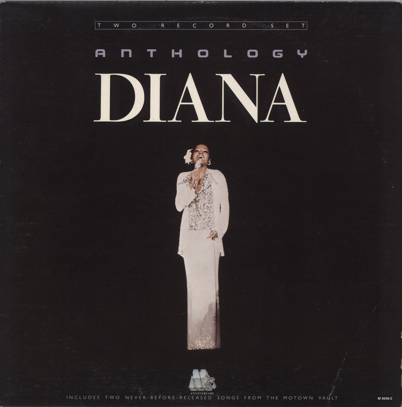 DIANA ROSS Anthology (1983 Canadian Motown label 23-track 2-LP vinyl set compiling the best of Diana's solo outputs from early hits including Ain't No Mountain High Enough, I'm Still Waiting and Touch Me In The Morning, through to early '80s Chic-produced winners, plus the previously unreleased Baby I Love Your Way and Young Mothers, housed in a gatefold picture sleeve which has some mild shelf/ringwear, whilst both discs are presented in Near Mint condition M6049/2)