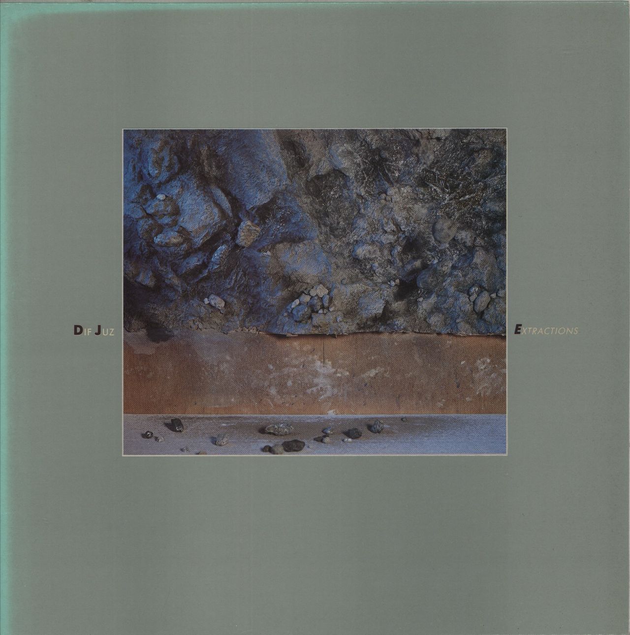 DIF JUZ Extractions (1985 UK 4AD label 9-track vinyl LP, the fifth album by the British instrumental band, produced by Robin Guthrie with guest vocals by Elizabeth Fraser on 'Love Insane'. The glossy picture sleeve has a little discolouration to the edges and a seam split to the bottom edge of the picture & inner sleeves [VG] while the vinyl [now removed from both sleeves for storage] remains in excellent condition with light signs of play)