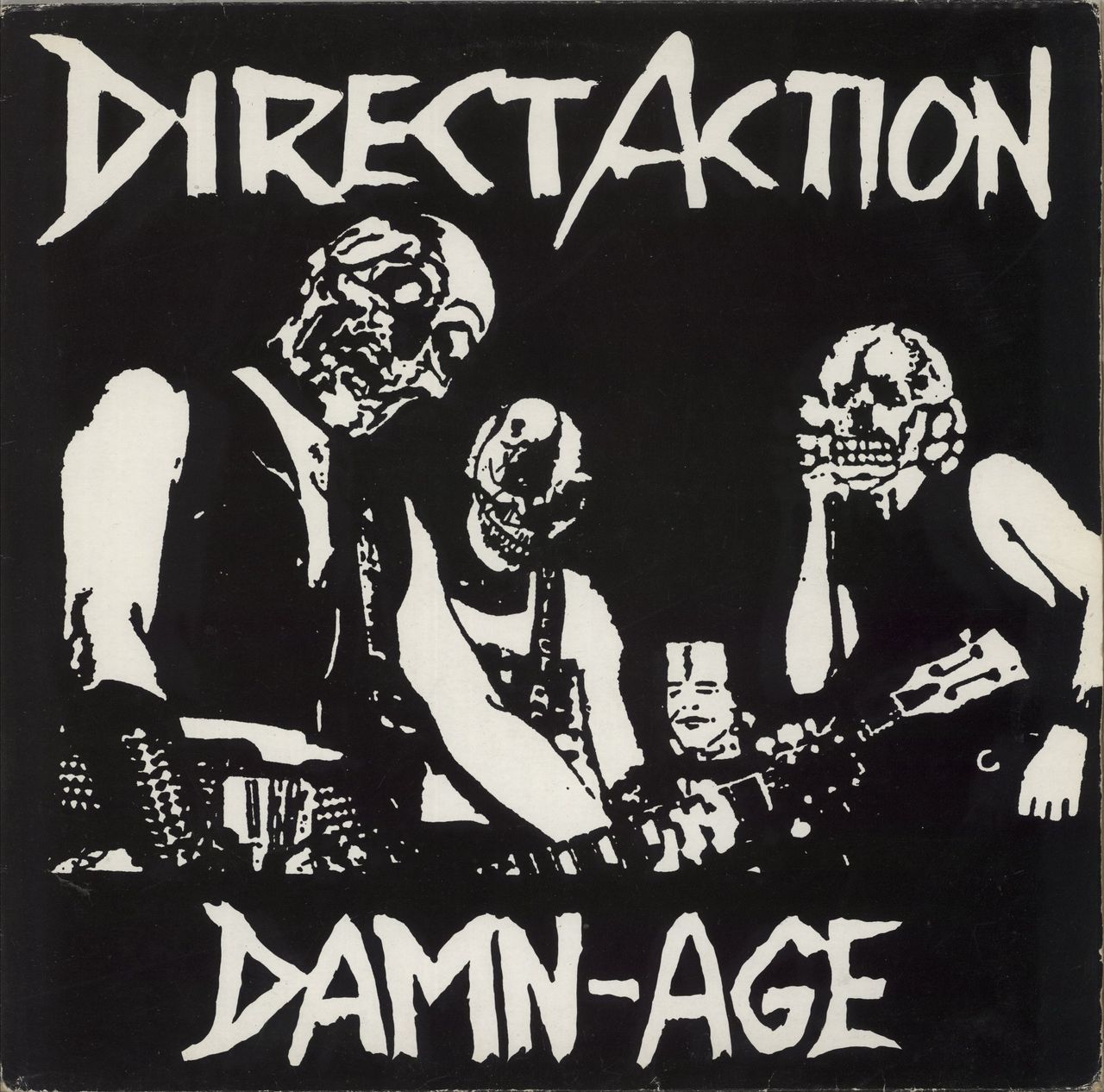 DIRECT ACTION Damn-Age (1988 German 16-track vinyl compilation LP from the Canadian Hardcore band. Picture sleeve with lyric insert. The sleeve shows just a little edge wear and scuffing. The insert has a small hand-written annotation and the vinyl reveals the odd cosmetic hairline and light signs of play EFA01652-08)
