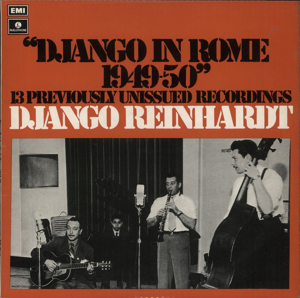 DJANGO REINHARDT Django Reinhardt In Rome 1949-1950 (1971 UK 13-track stereo LP in Parlophone's 'Pathé' Series, front laminated flipback picture sleeve. The sleeve shows minimal wear & the vinyl appears barely played PCS7146)