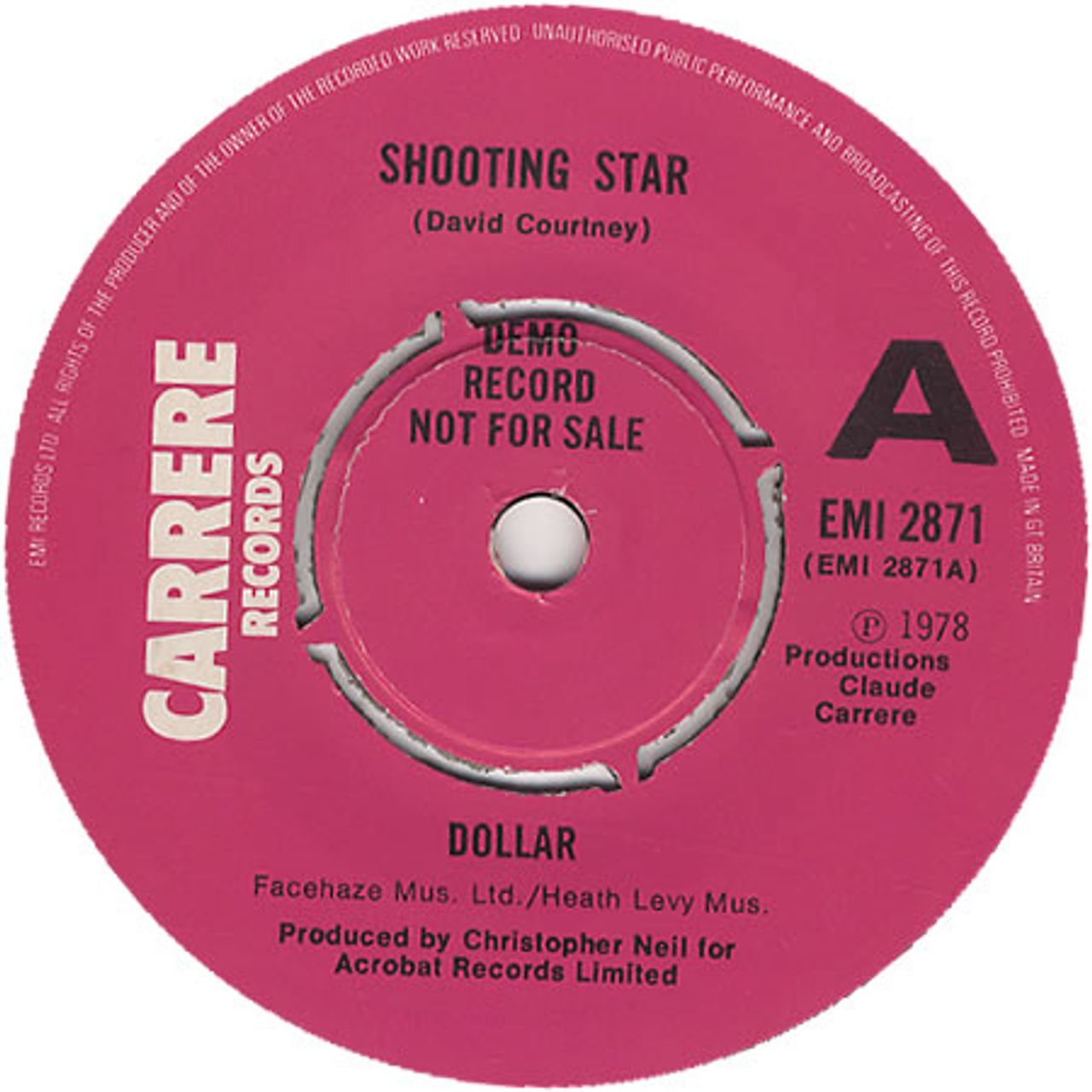 DOLLAR Shooting Star (1978 UK 'A' label demo Carrere