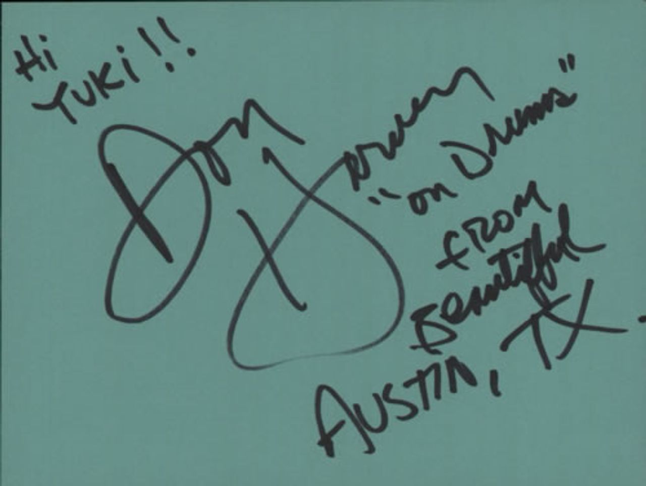 Signatures were obtained by Yuki Smythe-Park. For many years Yuki's husband Colin, was Eric Clapton's assistant tour manager, working on many of his 1980s concerts & tours. On August 26th 1990, Clapton played the Alpine Valley Music Theatre, Wisconsin, alongside Stevie Ray Vaughan & Double Trouble, Robert Cray and Buddy Guy. Following the show Colin Smythe, along with Clapton's agent Bobby Brooks, his bodyguard Nigel Browne and Stevie Ray Vaughan boarded a helicopter bound for Chicago. Tragically, the helicopter crashed shortly after take-off, killing all on board. Yuki was friends with many artists from that era and continued to attend gigs and fill her numerous autograph books. This signature was obtained in person by Yuki.