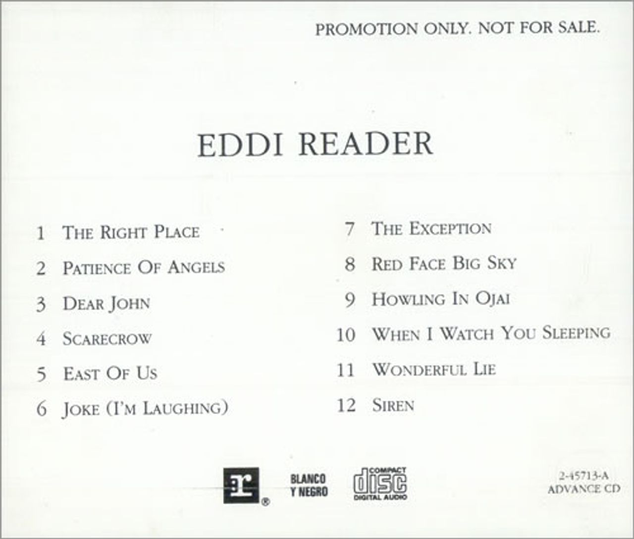 EDDI READER Eddi Reader (1994 US 12-track advance promotional CD for the second solo album from the former Fairground Attraction vocalist, featuring tracks written by Boo Hewerdine, Mark Nevin and Kirsty MacColl. Custom printed disc with the full tracklisting complete with a tracklisting back inlay 2-45713-A)