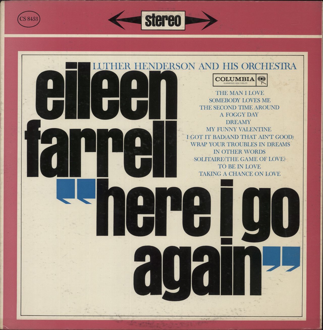 EILEEN FARRELL Here I Go Again( 1961 US 12 track 'Demonstration copy' vinyl lp front pasted picture sleeve with six eye company label. This example has a Demonstration Only- Not For sale red stamp to the reverse and,along with the vinyl, carryminimal signs of wear/play CS8453)
