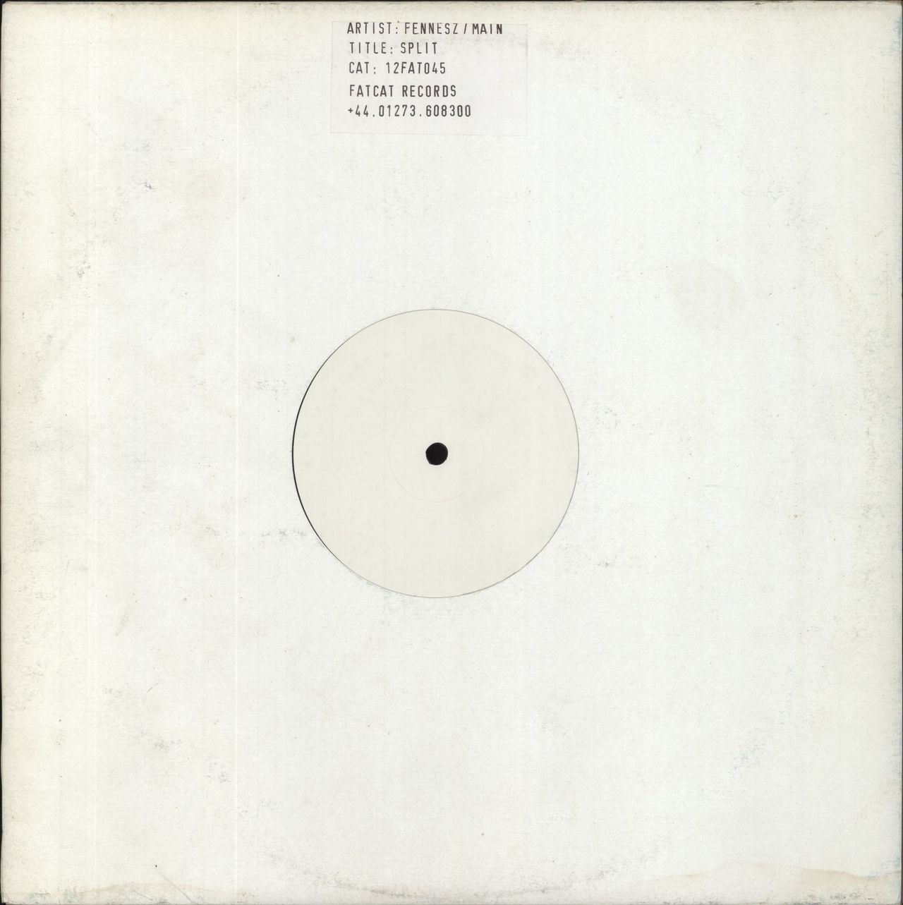FENNESZ / MAIN Split (Limited edition 2002 UK 6-track vinyl split 12" white label EP, Housed in a plain white and stickered card die-cut sleve. Both sleeve and vinyl remain in excellent condition with only minor signs of wear, none of which impacts any play 12FAT045)