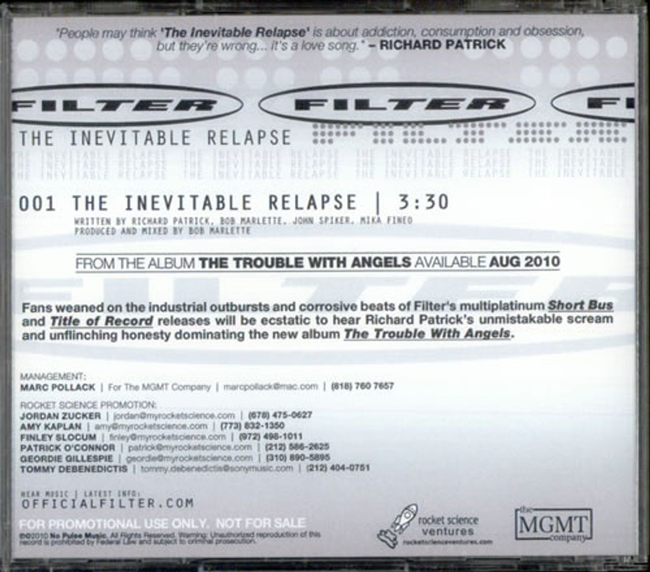 FILTER The Inevitable Relapse (2010 US 1-track promotional CD,