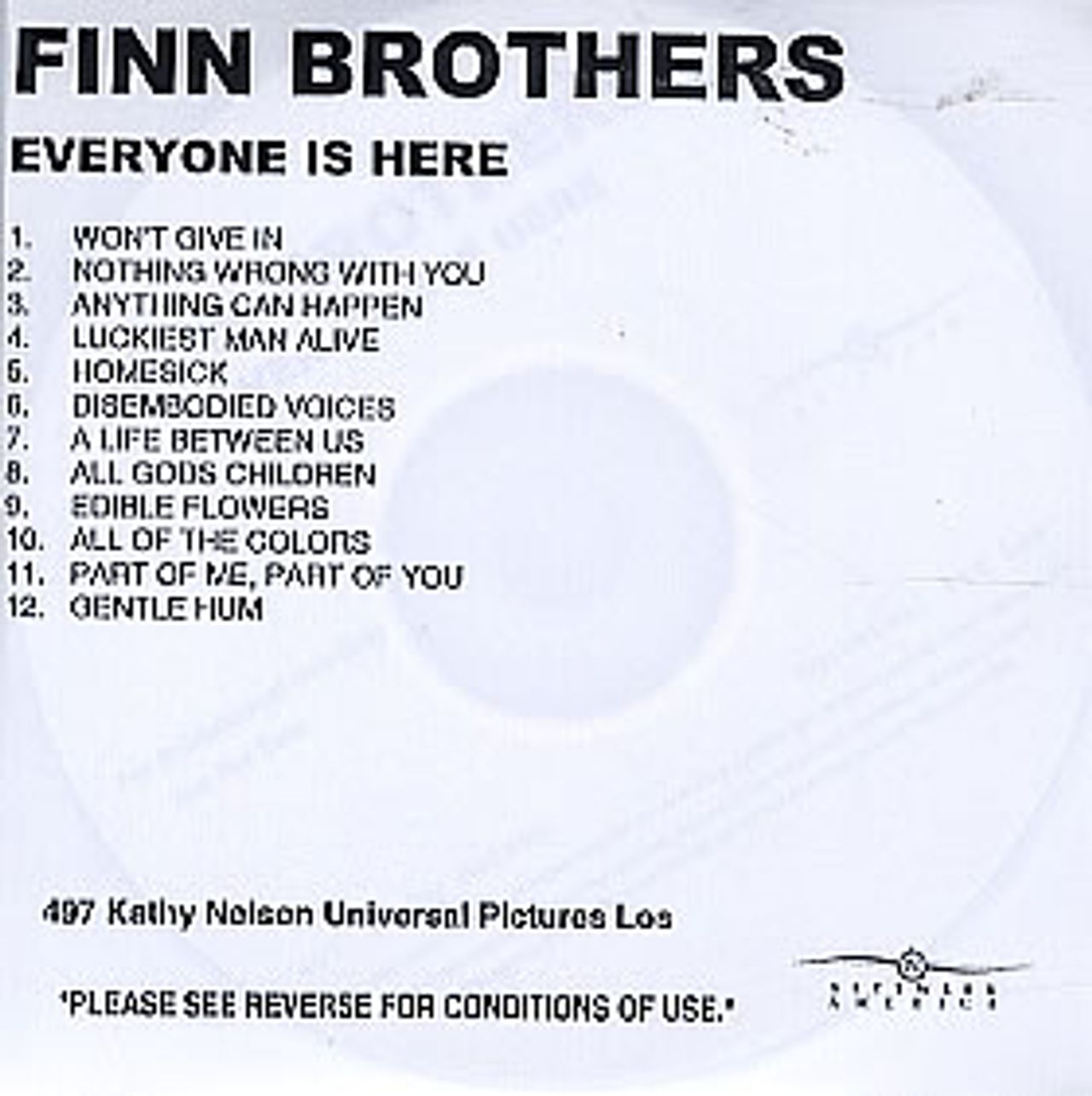 Finn Brothers Everyone Is Here US Promo CD-R acetate