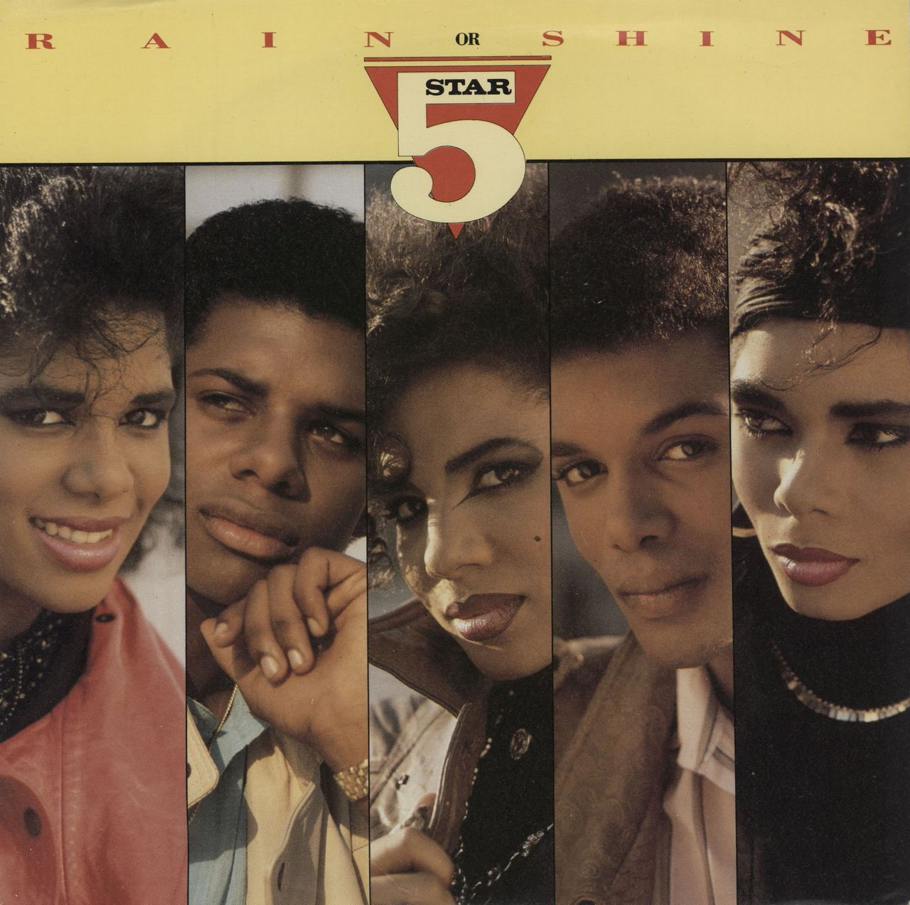 FIVE STAR Rain Or Shine (1986 UK solid centre 7" vinyl single, also including Summer Groove. The picture sleeve shows just a little light shelfwear with some light ringwear, while the vinyl remains in excellent condition PB40901)