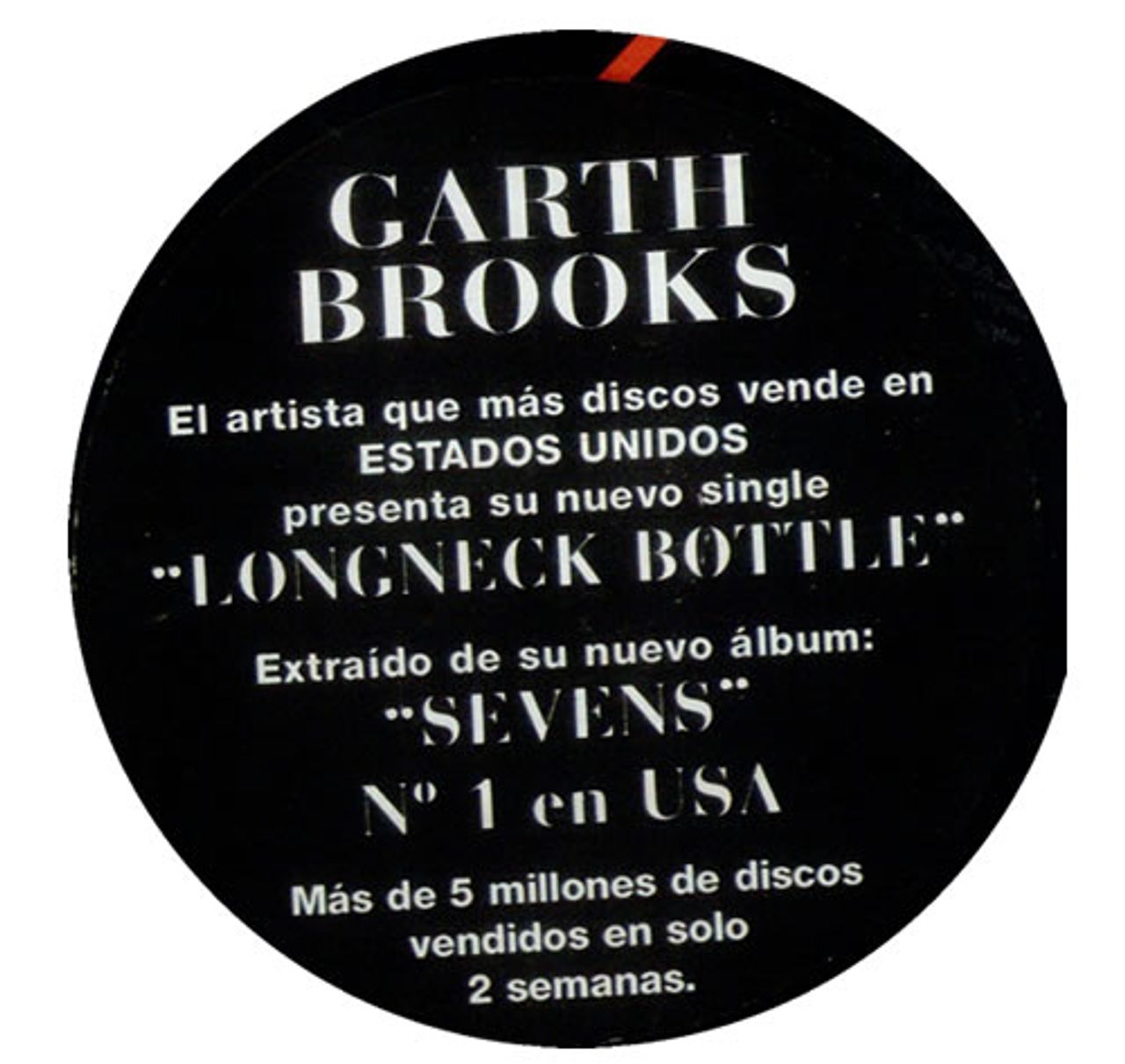 GARTH BROOKS Longneck Bottle (1995 Dutch 1-track advance promotional CD featuring the single release from Garth's Sevens album, custom Spanish promo stickered jewel case as this CD was destined to be distributed to our Latin cousins!)