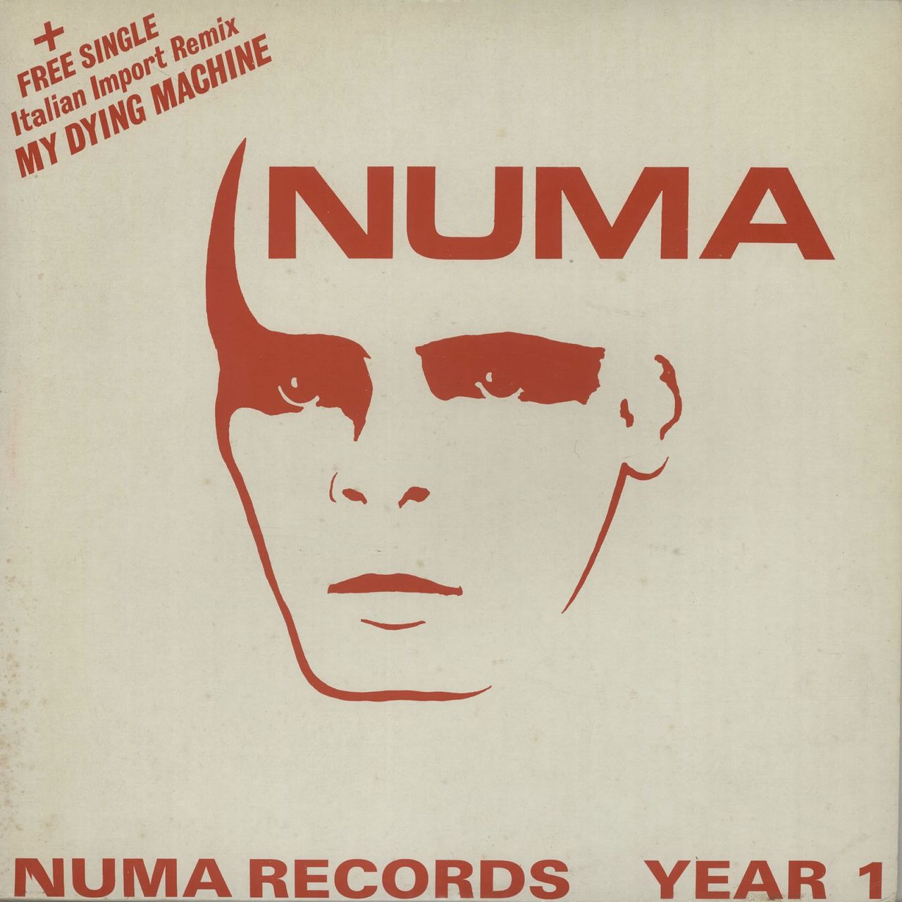GARY NUMAN / VARIOUS Numa Records Year 1 (1986 UK 11-track compilation LP featuring four tracks by Gary Numan - I Still Remember, A Child With The Ghost, Cold Warning and Creatures, plus tracks by other artists on the Numa label, complete withpicture inner & bonus Italian Import Remix 12" of My Dying Machine in its own picture sleeve [NUM6], picture sleeve. The sleeve shows just a little light shelfwear and the vinyl looks barely played NUMA1004)