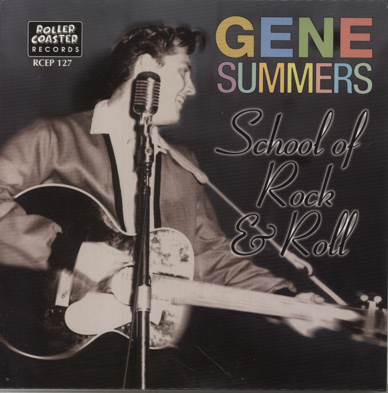 GENE SUMMERS School Of Rock 'n Roll (1977 UK/EU 4-track wide centred 7" vinyl single, including Straight Skirt, Nervous and Fancy Dan. Originally released in 1958. Picture sleeve RCEP127)