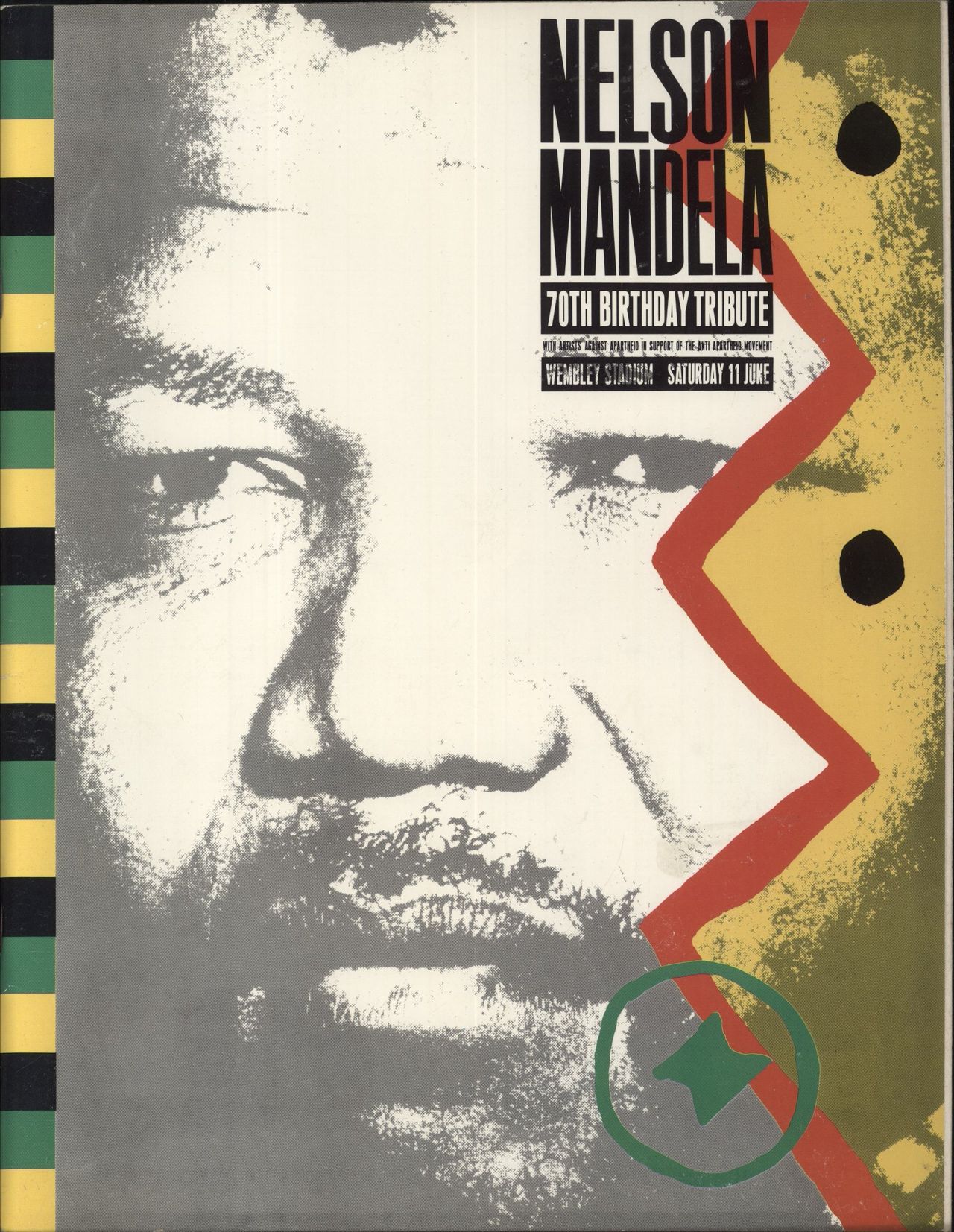 GEORGE MICHAEL / ARTISTS AGAINST APARTHEID Nelson Mandela 70Th Birthday Tribute (Official 1988 UK 64-page 12" x 9" glossy Souvenir Tour Programme for the concert at Wembley Stadium on 11 June 1988 which included performances from George Michael,Sting, Bryan Adams, Phil Collins, Whitney Houston, Natalie Cole, Eurythmics, The Bee Gees and many more. The programme includes biographical notes and pictures of all the performersat this memorable event)