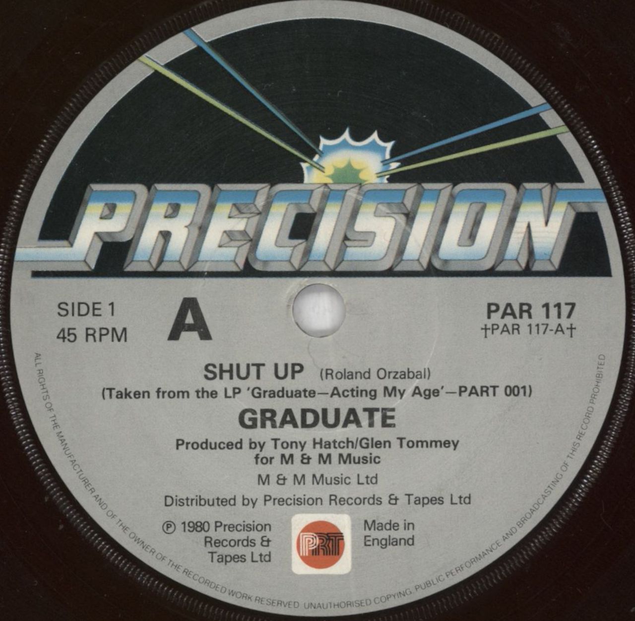 GRADUATE Shut Up (1981 7" single featuring Ever Met A Day housed in a plane die-cut sleeve. The vinyl appears barely played PAR117)