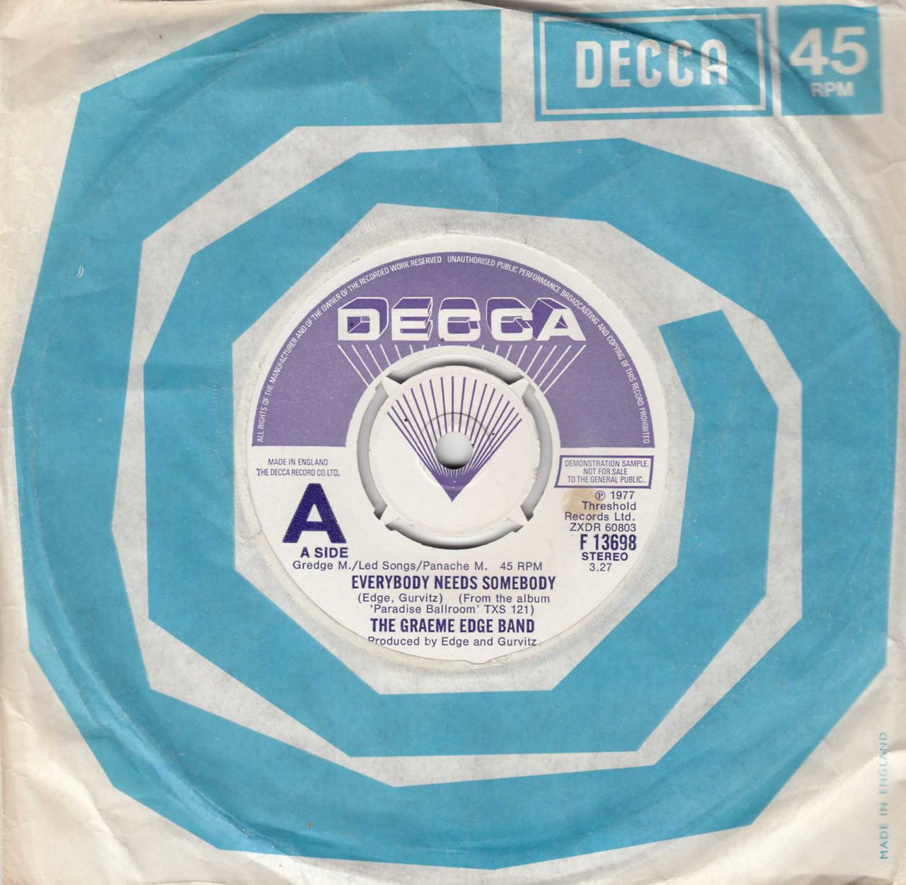 GRAEME EDGE Everybody Needs Somebody (1977 UK 'A' label