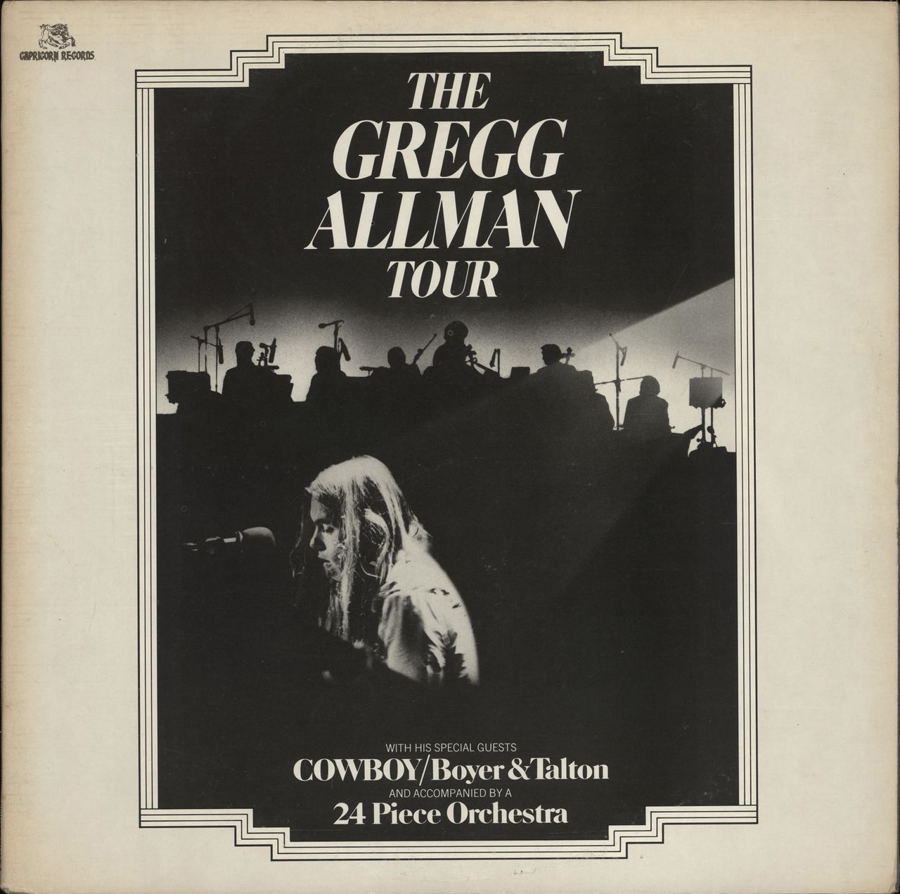 GREGG ALLMAN The Gregg Allman Tour (1974 US Capricorn 12-track double LP, recorded live at New York's Carnegie Hall & the Capitol Theatre in Passaic, New Jersey, housed in a pasted gatefold picture sleeve with deletion saw-cut & label inners. The sleevehas only minor general storagewear and the vinyl looks seldom played 2C0141)