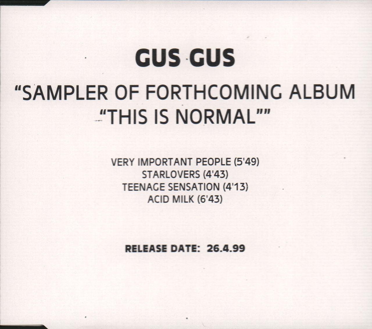 Gus Gus This Is Normal Sampler UK Promo CD-R acetate