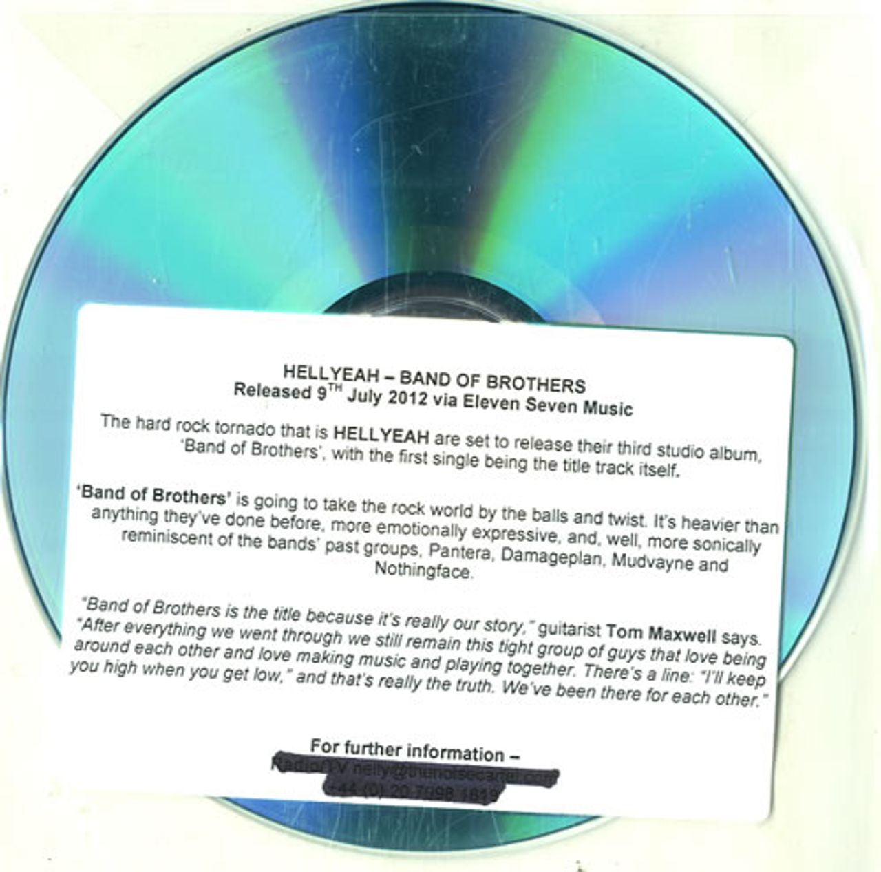 Hellyeah Band Of Brothers UK Promo CD-R acetate