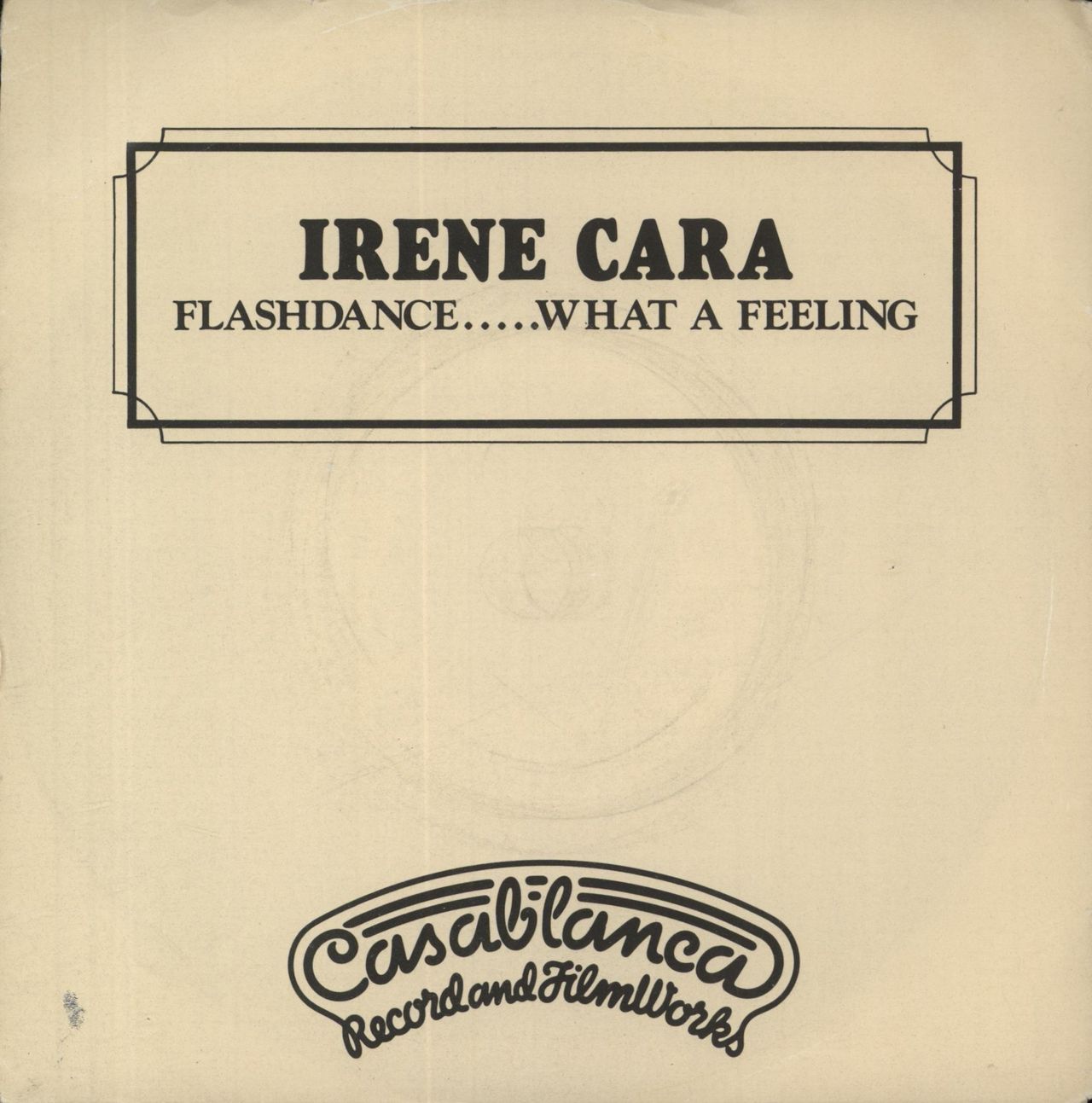 IRENE CARA Flashdance... What A Feeling (1983 UK injection moulded 7" vinyl single, also including Love Theme From Flashdance. Issued in the original custom printed titled sleeve. The sleeve has some light ringwear and a little creasing. The vinyl remains in Excellent condition CAN1016)