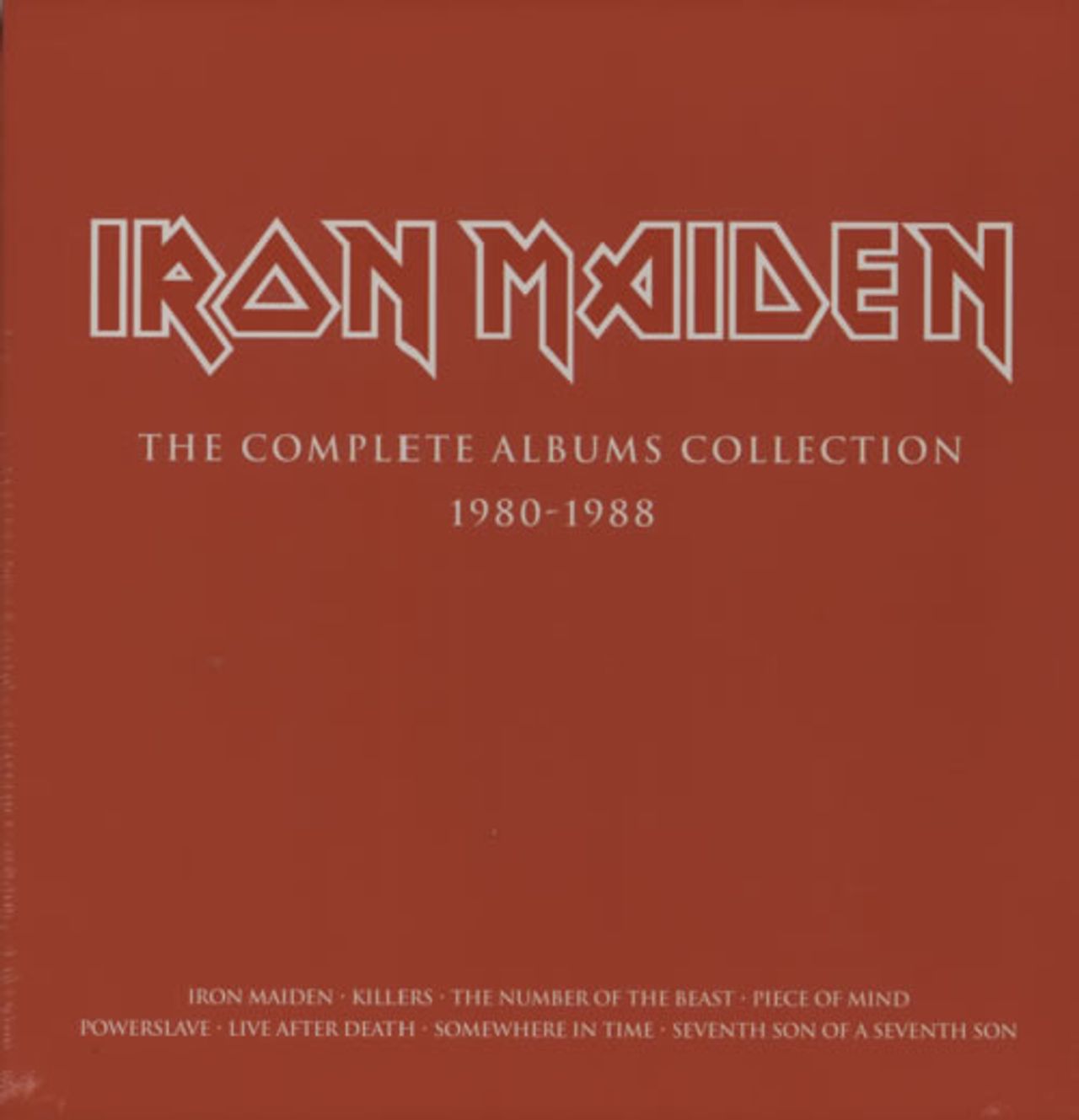 IRON MAIDEN The Complete Albums Collection 1980-1988 (2014 UK limited edition 3-LP box set containing remastered versions of their first three studio albums: Iron Maiden, Killers and The Number Of The Beast, all pressed on 180gram Vinyland issued in their own picture sleeves. All housed in a 12½" x 12½" x 1½" red & white titled slipcase style box with space for the remaining five reissues with the back of the box displaying the artwork & tracklistings for the complete 8-LP set. Shrinkwrap sealed from new!)