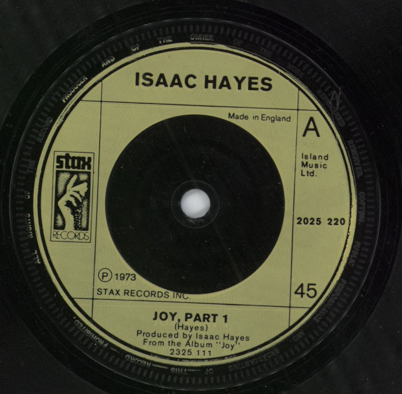 ISAAC HAYES Joy Part 1 (1973 UK Stax injection label 7" vinyl