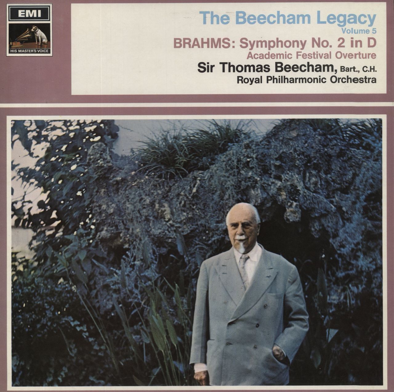 SIR THOMAS BEECHAM conducts the ROYAL PHILHARMONIC ORCHESTRA Brahms: Symphony No. 2 In D / Academic Festival Overture (1970s 5-track stereo vinyl LP, front laminated flipback picture sleeve. The sleeve shows minimal wear and the vinyl is NearMint HQS1143)