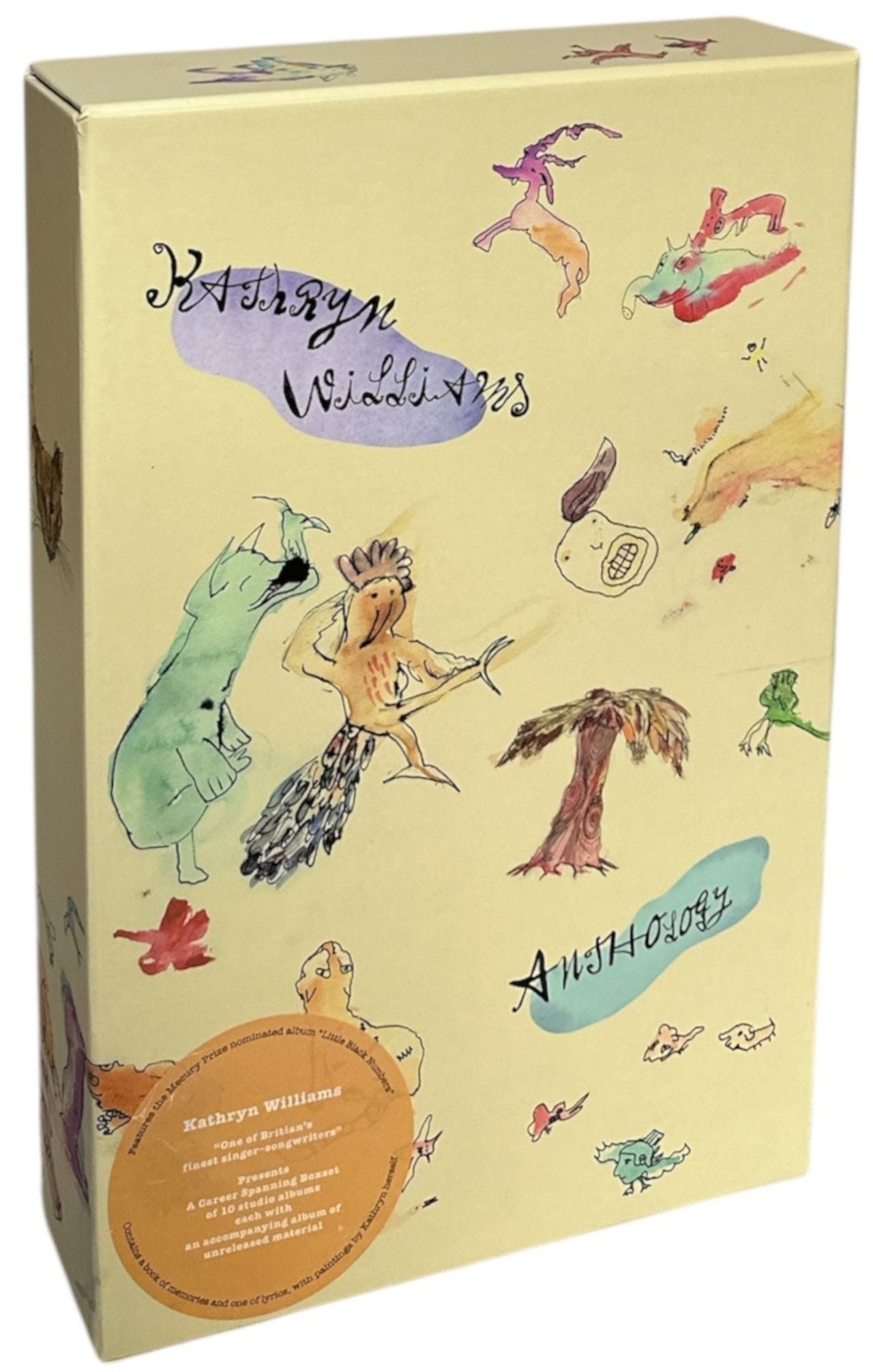 KATHRYN WILLIAMS Anthology (2019 UK limited edition TEN X 2-CD ALBUM Box Set comprising ten studio albums each with an accompanying album of unreleased material, including the Mercury Prize nominated album 'Little Black Numbers'. The twenty discs are spread between two 11" x 7" fold-out illustrated folders titled - 'Book Of Albums' and 'Book Of Rarities'. Also includes a 8" x 5½" hardback book of lyrics with illustrations by Kathryn herself plus an illustrated softback bookof memories. All housed in a 12" x 8" x 2" hype stickered picture box TFLP1392CDBOX)