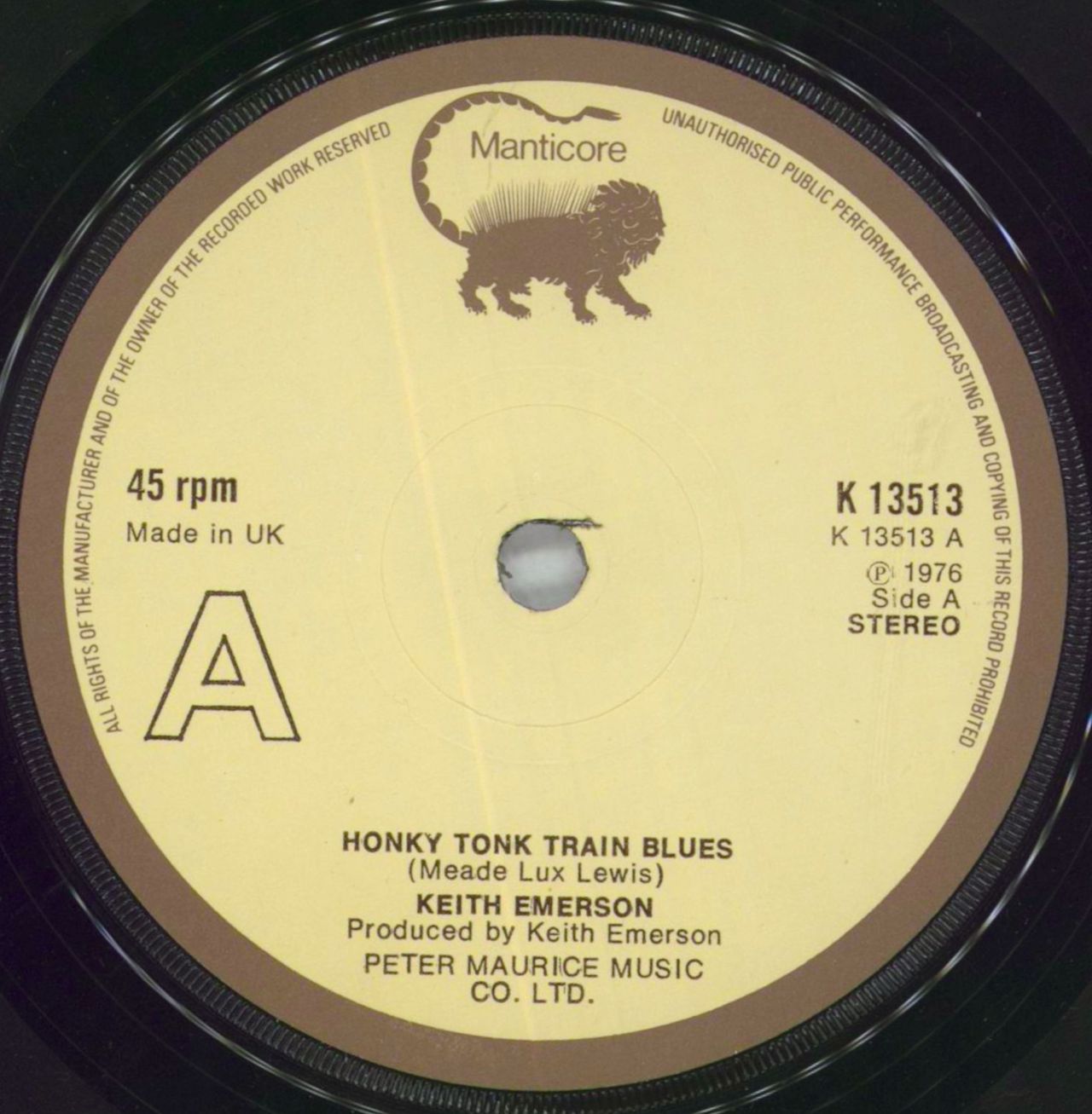 Keith Emerson Honky Tonk Train Blues UK 7" vinyl