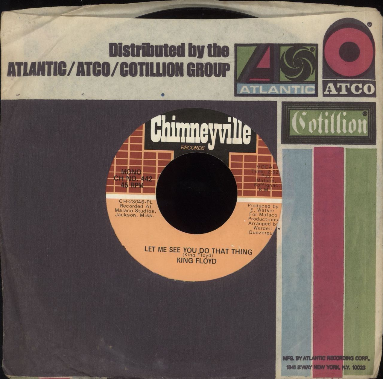 KING FLOYD Let Me See You Do That Thing (Scarce 1971 US wide centred 7" vinyl single released on the Chimneyville label, also including It's Wonderful. The vinyl has light evidence of play but appears in excellent condition issued in the Atlantic / ATCO group company die-cut paper sleeve CH-442)
