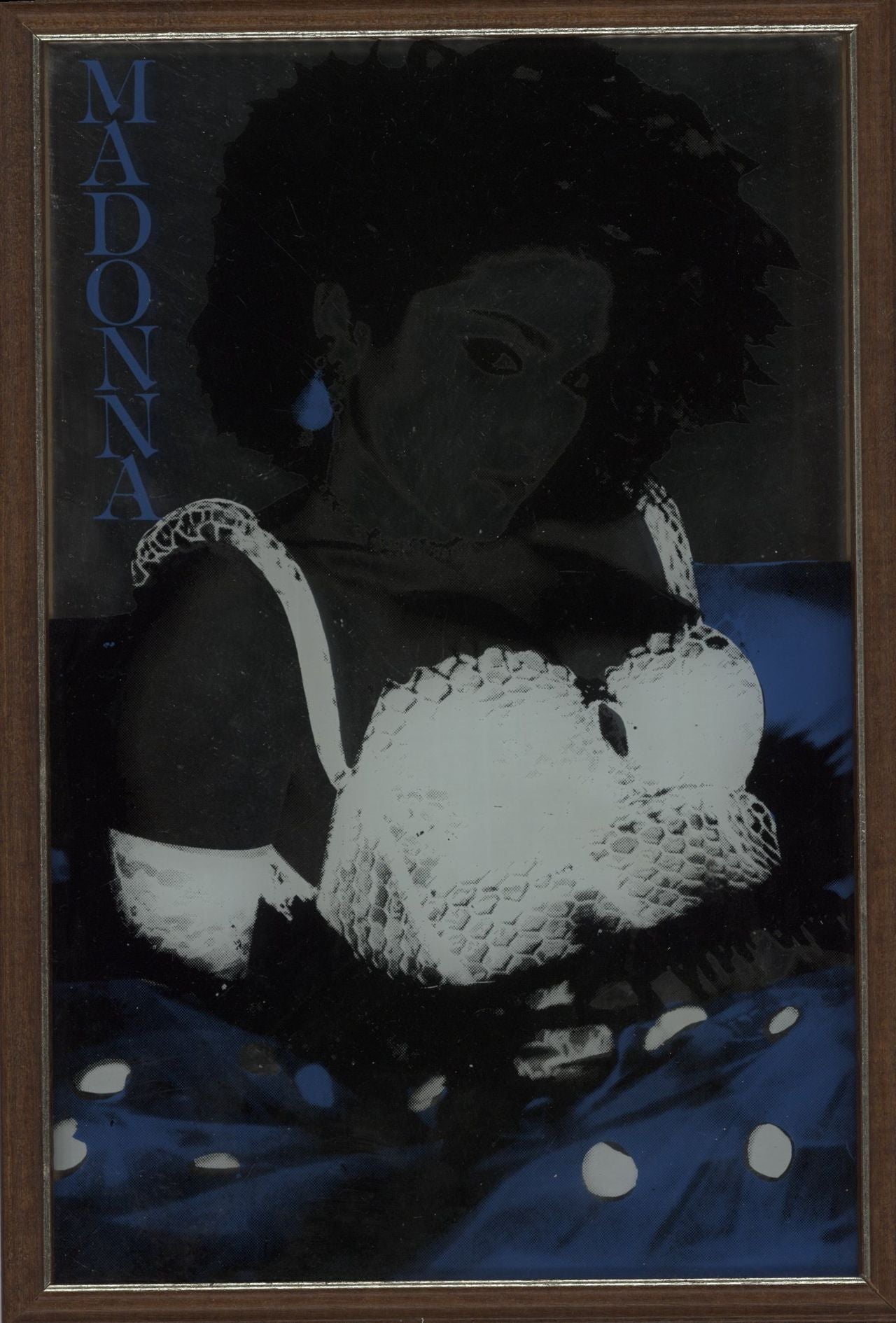 MADONNA 1980s Mirror (Rare original UK mirror from the early 1980s, featuring a full-colour image of Madonna in her iconic Like a Virgin-era look – lace gloves, tousled hair, and attitude to match. Measuring approx. 9" x 12", this unofficial collectible is a classic piece of vintage pop memorabilia. In Excellent to Mint condition with only light signs of age – a fantastic display item for any true Madonna fan or ’80s pop culture collector!)