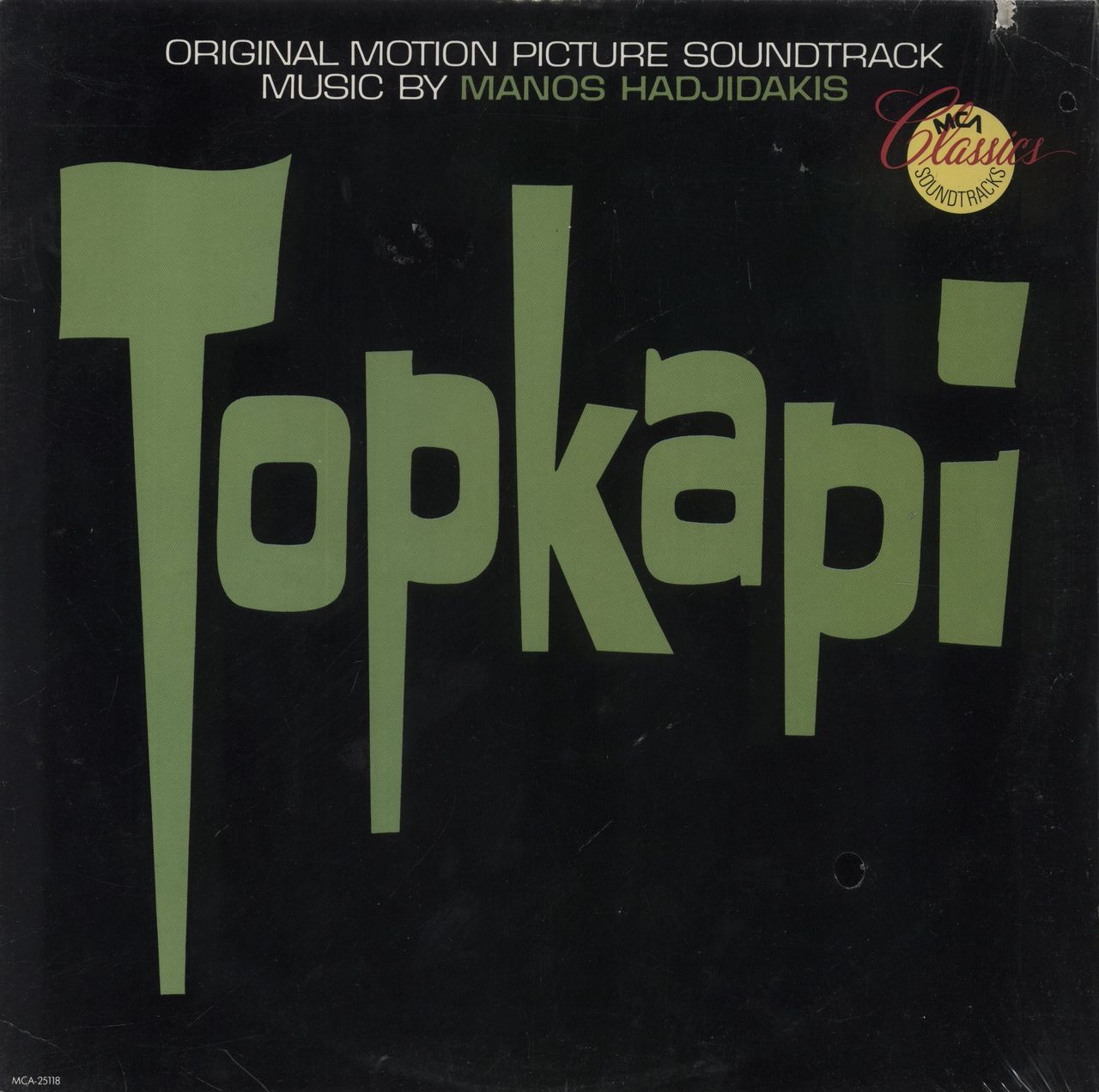 ORIGINAL SOUNDTRACK Topkapi (1980 US 13-track mono vinyl LP, featuring Manos Hadjidakis' music from the soundtrack of the Jules Dassin film, picture sleeve with deletion notch. The sleeve retains its open shrink and therefore shows light wearand the vinyl has little sign ofplay - a great copy! MCA25118)