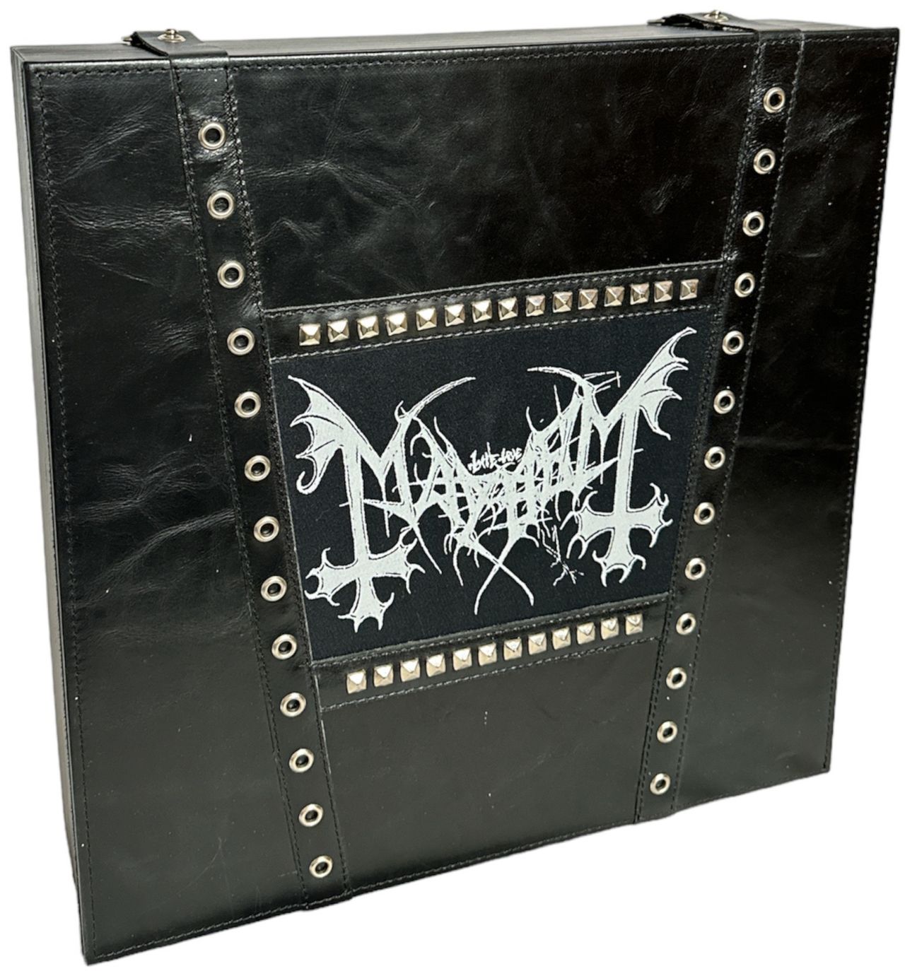 MAYHEM A Season In Blasphemy (2018 US 49-track Vinyl Box Set comprising of Mayhems efforts in the 2000's, under Rune 'Blasphemer' Eriksen's tenure in the band. Includes four LP's, three 10"s, a iron-on logo patch, a 32 page booklet and a numbered art print on black paper, all housed in an impressive leather-clad, solid wood box which is opened with leather straps fastened to metal studs. All contents grade Near Mint with no obvious signs of wear or play, the box itself shows no obivous signs of wear. An essential release for the Mayhem fans that stuck around after the Euronymous years)