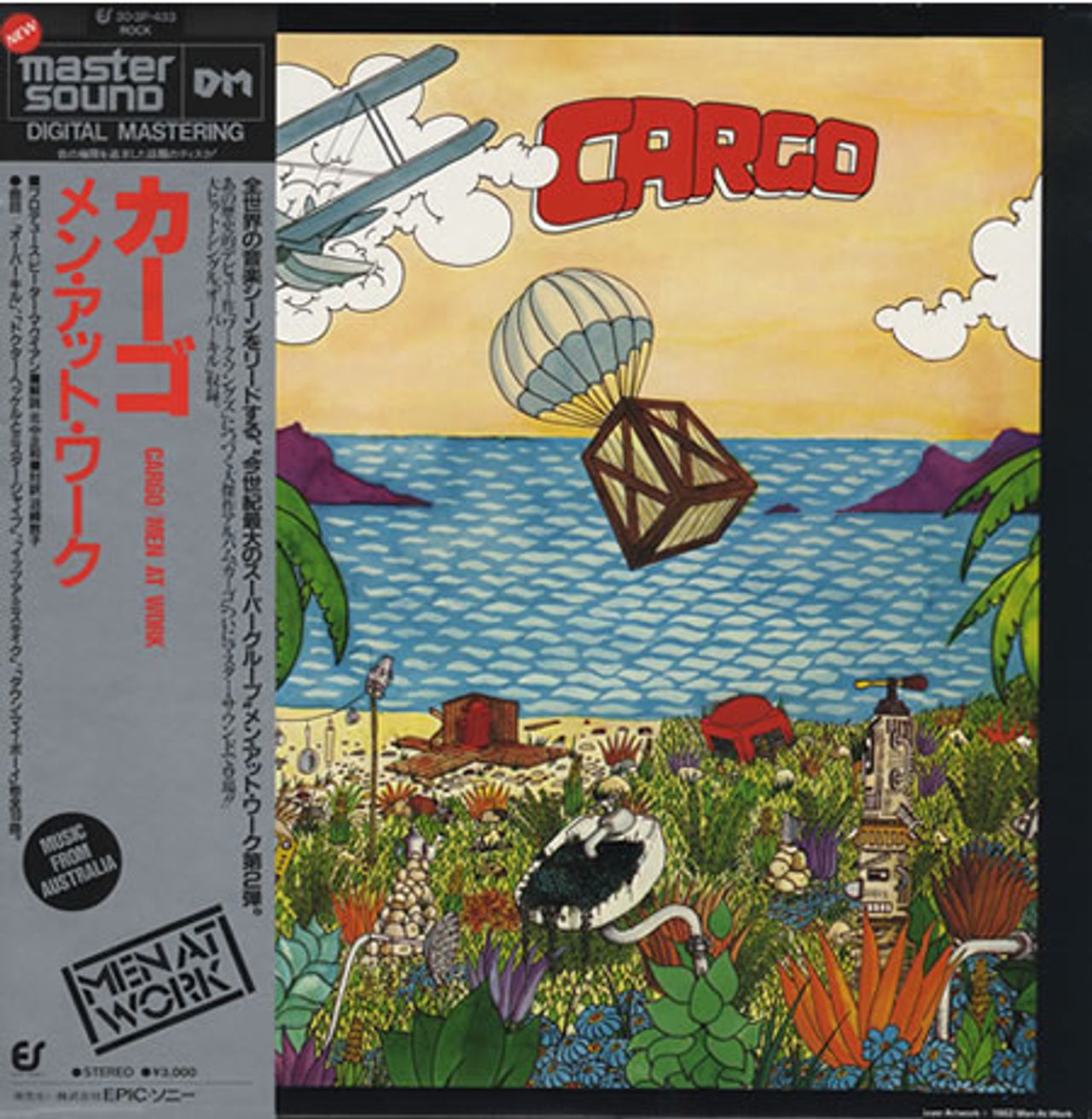 MEN AT WORK Cargo (1983 Japanese 'Mastersound' series half-speed mastered audiophile issue of the 1982 10-track vinyl LP, complete with 4-page Japanese text biography/lyric insert and additional Mastersound inserts, picture sleeve with silver series obi-strip. This example remains in the original open shrinkwrap, therefore the sleeve displays minimal wear and the vinyl looks barely played 30.3P-433)