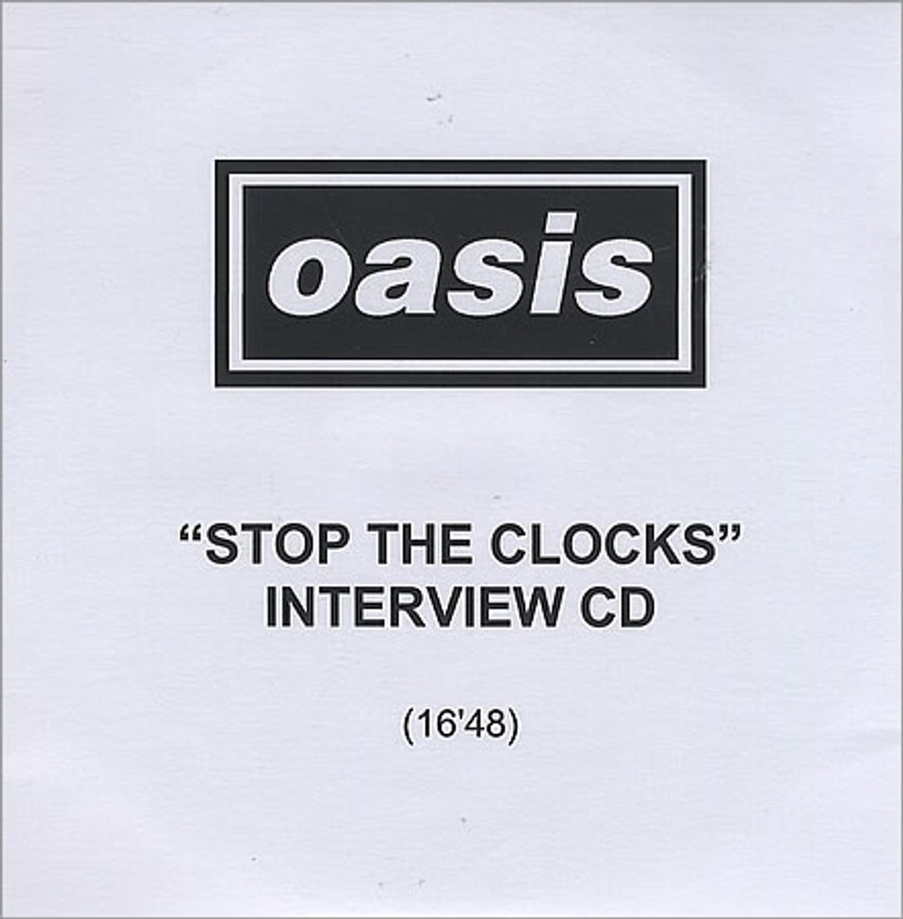 OASIS Stop The Clocks - Interview CD (Rare 2006 UK exclusively promotional interview CD-R featuring sixteen minutes & forty-eight seconds of Noel & Liam talking about their decisions as to which tracks to include on the album and why they named it 'Stop The Clocks'. Distributed to select media and DJs as part of the extensive promotional campaign for the album release. Custom printed disc & title inlay)