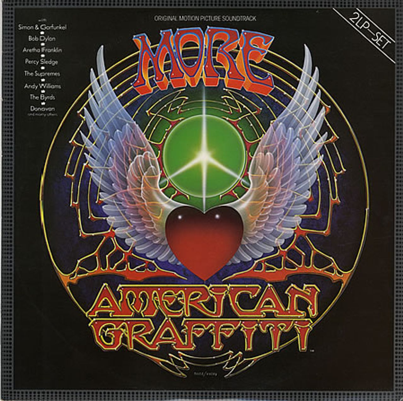 VARIOUS More American Graffiti Volume IV (UK 24-track original motion picture soundtrack 2-LP vinyl set, includes tracks by Bob Dylan, The Byrds, Aretha Franklin & Percy Sledge, picture sleeve + picture inners. The sleeve has some light storage marks and the vinyl is in excellent condition with just a little light cosmetic wear only MCLD620)