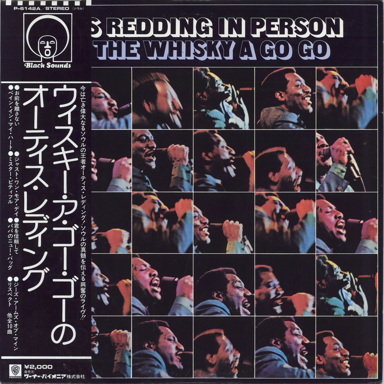 OTIS REDDING In Person At The Whisky A Go Go (1975 Japanese issue of the 1968 10-track vinyl stereo LP on the green & orange Atlantic label manufactured by Warner-Pioneer, featuring live recordings from his performance at the Whisky A Go Go venue in Los Angeles, CA during the Spring of 1966. The vinyl looks barely played issued in the back-pasted picture sleeve comes with the double-sided Japanese text / English lyric insert plus the 'Black Sounds' series obi-strip P-6142A)