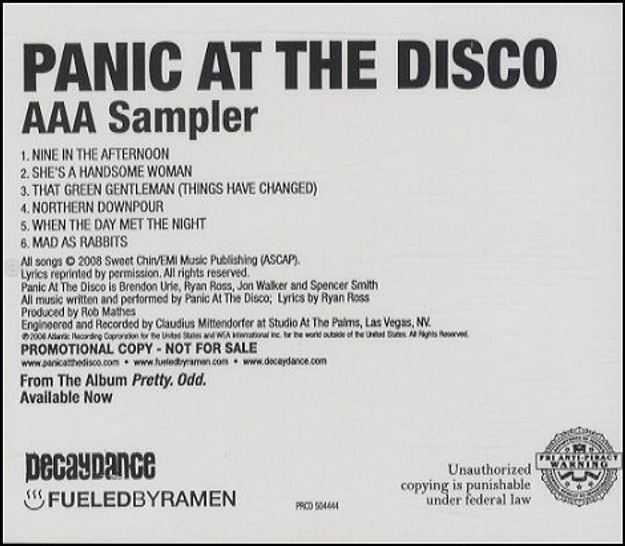 PANIC AT THE DISCO AAA Sampler (2008 US 6-track promotional