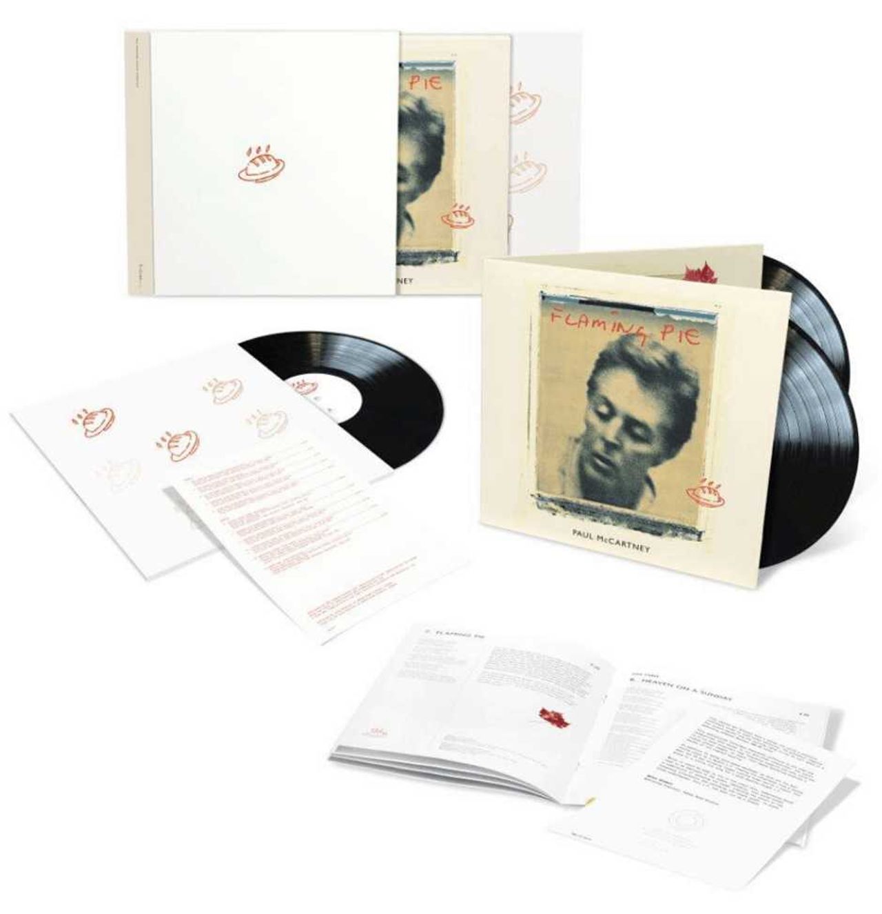 PAUL MCCARTNEY Flaming Pie (2020 UK/EU limited edition triple LP set featuring the remastered album cut at half speed pressed across Two 180gram Vinyl disc in a gatefold sleeve with exclusive artwork and booklet, plus a third heayweightLP of unreleased home recordings [in hand-stamped white label sleeve]. Both sleeves are then housed within a sealed picture slipcase. Recommended!)